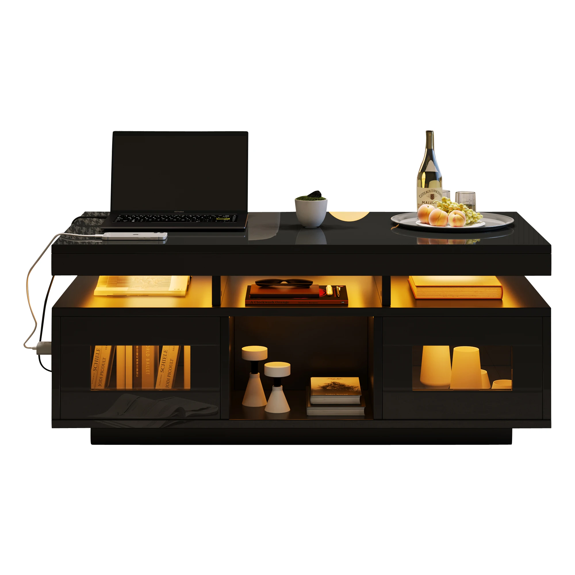 2 armoires, 2 étagères ouvertes et 1 niveau de rangement offrent un espace clair pour organiser vos livres, décorations ou appareils technologiques du quotidien.