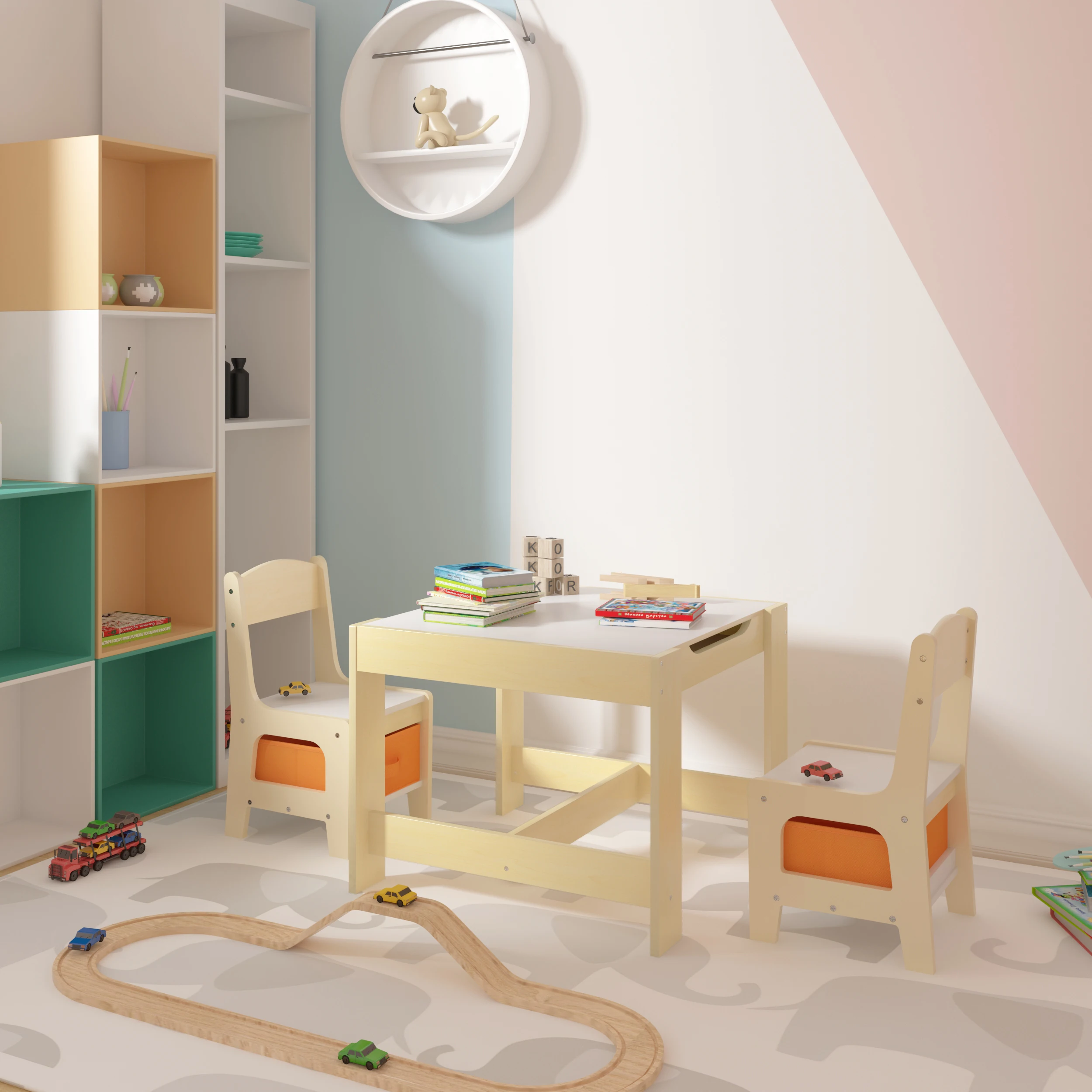 Espace de stockage :❤ Style unique, 2 boîtes de rangement non tissées sont mobiles et pliables, vous pouvez mettre des jouets, des livres d'images, des pinceaux, etc.C'est un meuble idéal pour les enfants d'âge préscolaire.
