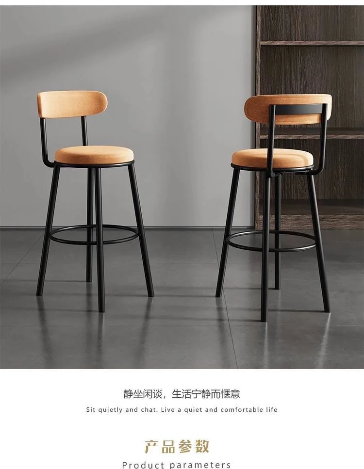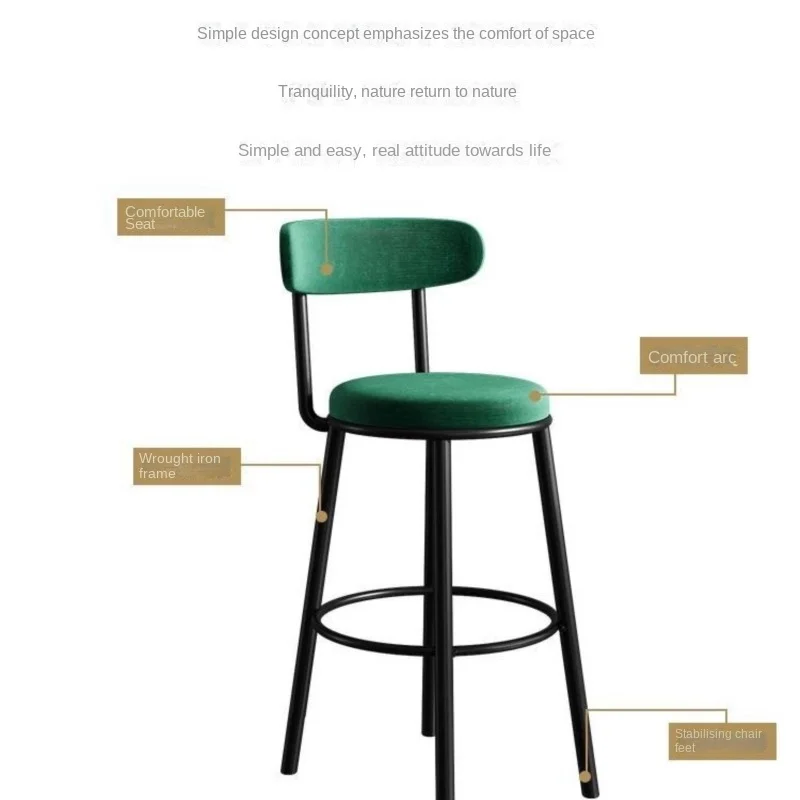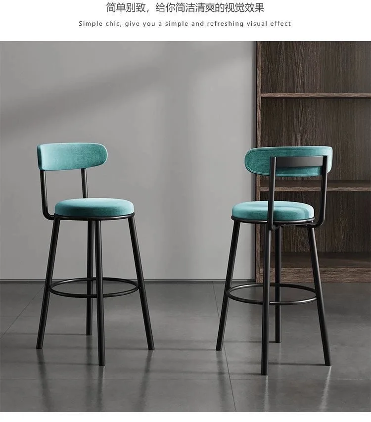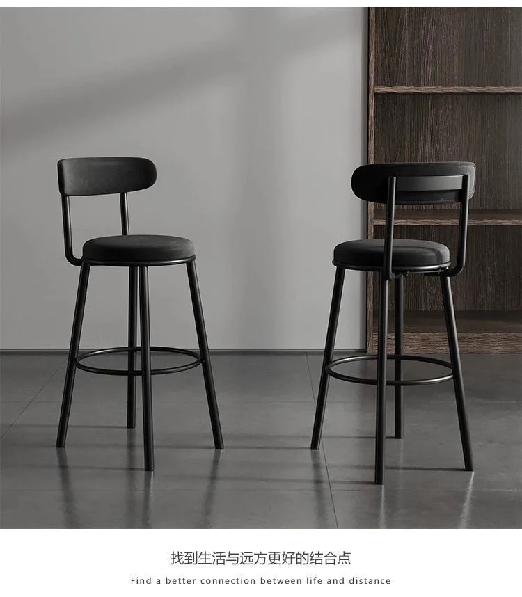 Tabouret haut de bar en fer avec dossier, chaise de bar moderne, simple, scandinave, léger, luxe, noir, maison