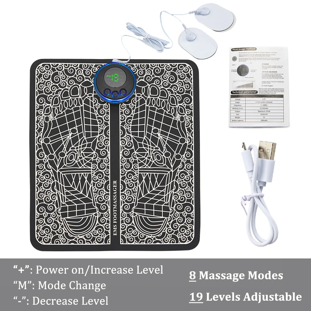 EMS tapis de massage des pieds électrique TENS pieds masseur Pad pliable tapis de Massage Stimulation musculaire Fisioterapia Terapia physique Salude