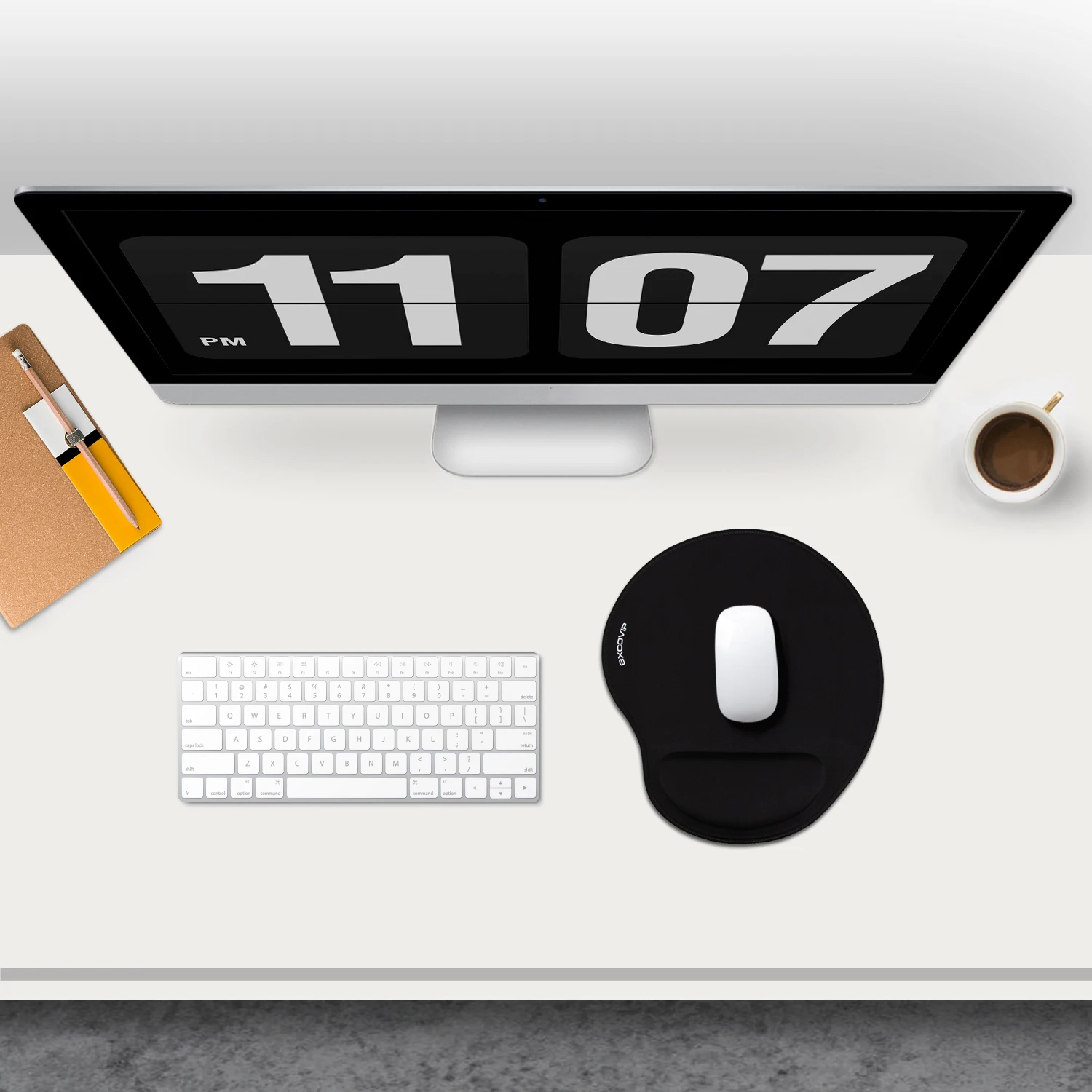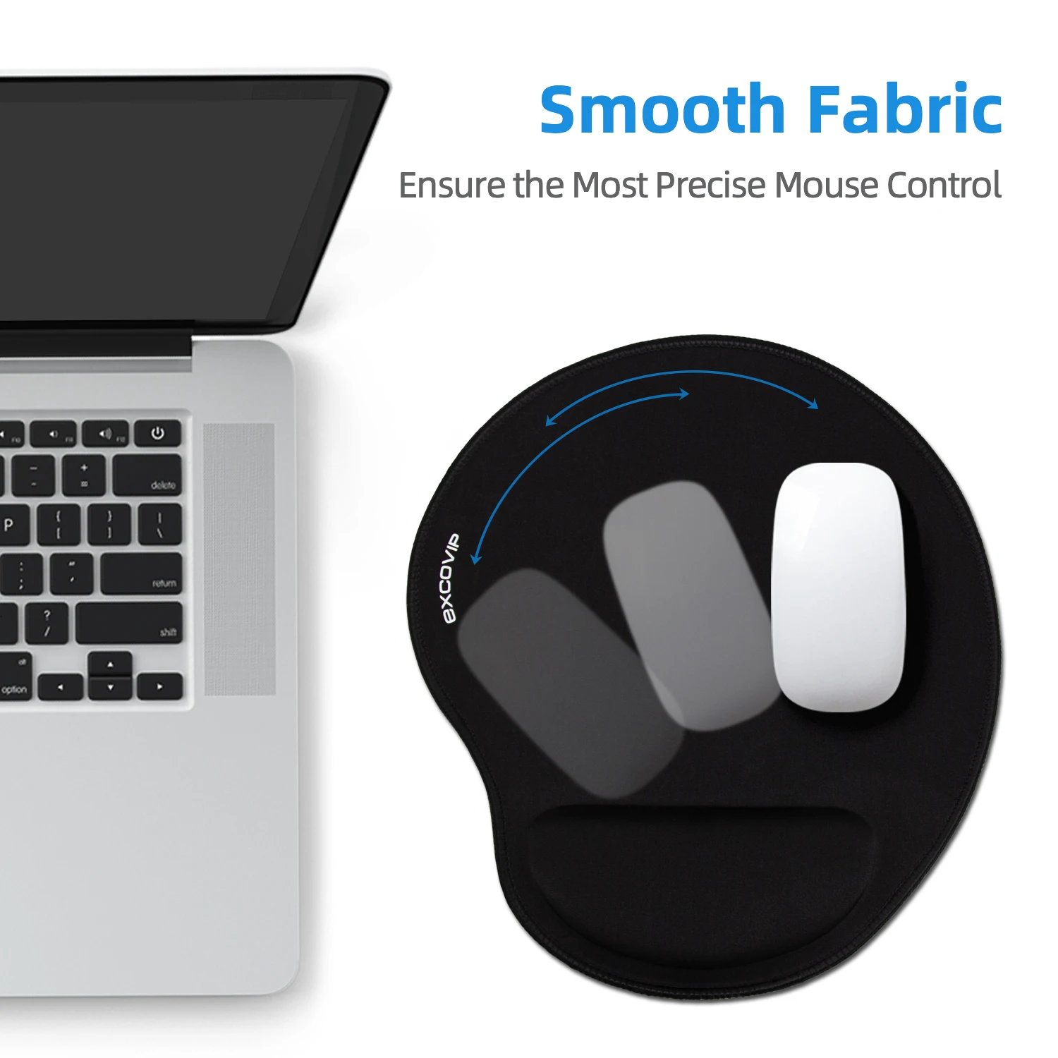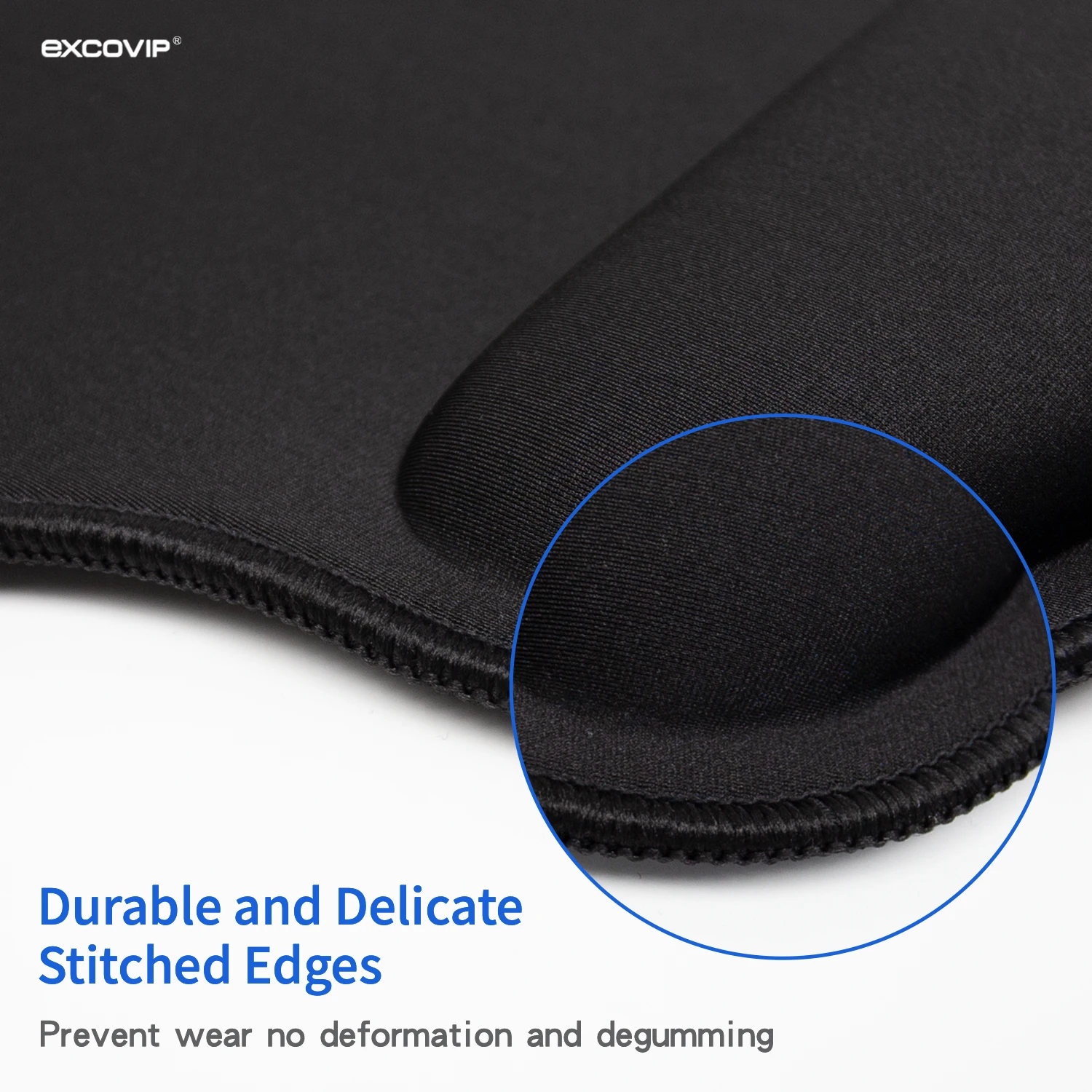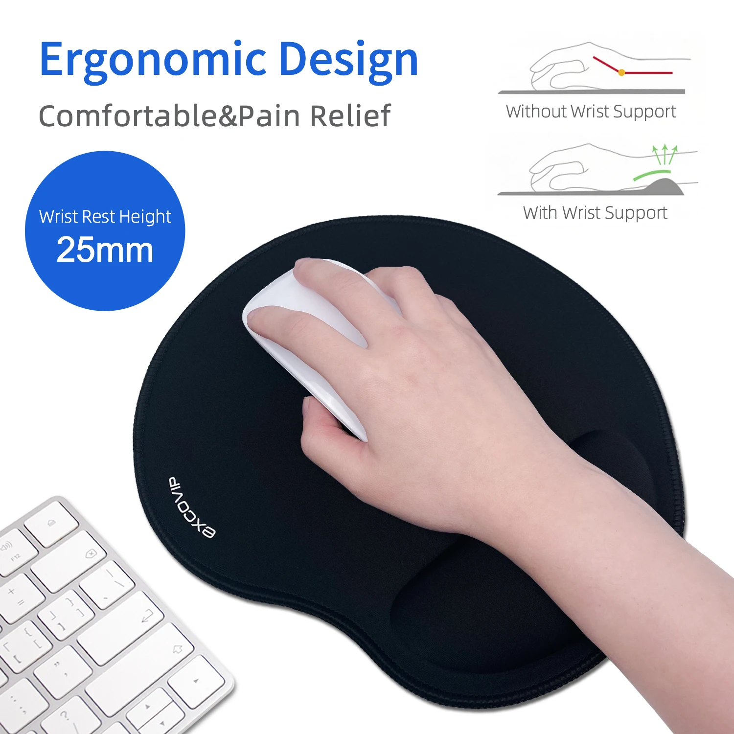 Tapis de souris ergonomique EXCO avec Support de poignet en mousse à mémoire de forme, bord cousu, tapis de souris de bureau confortable, Base en caoutchouc antidérapante