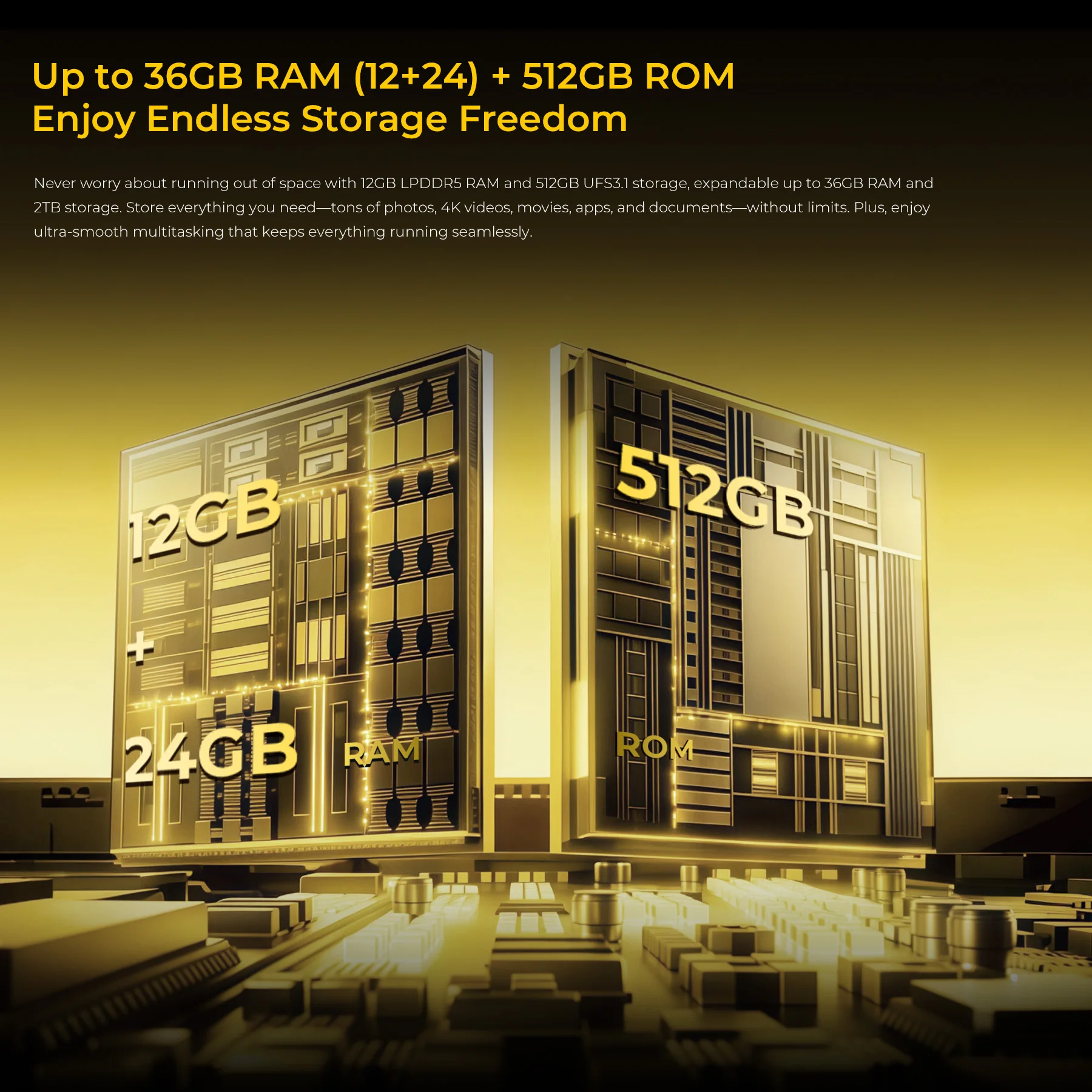 RAM et ROM | 8 Go de RAM + 16 Go de RAM extensible et 256 Go de ROM 12 Go de RAM + 24 Go de RAM extensibles et 512 Go de ROM |