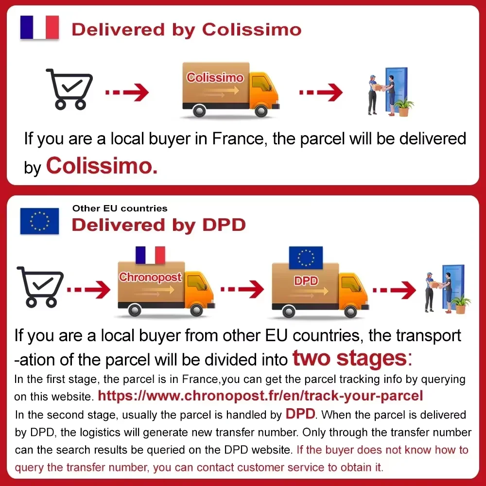 Si vous êtes un acheteur local en France, le colis sera livré par Colissimo.