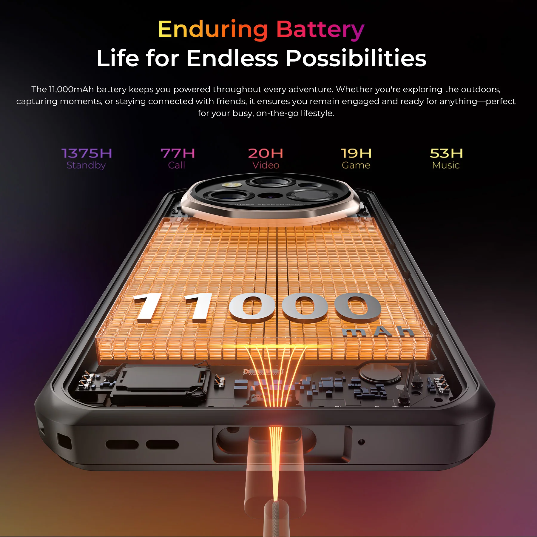 Caractéristiques : Processeur : MTK Dimensité 7025 (5G) Batterie : batterie 11 000 mAh ; Charge rapide 33 W et charge inversée cran : 6,6" FHD+ ; 1080*2408 ; 120 Hz Système d'exploitation : Android 15, prise en charge OTA RAM : 48 Go (16+32) ROM : 512 Go Caméra arrière : 108 MP (principal) + 8 MP (nuit) + 5 MP (RVB) Caméra frontale : 32MP SIM : Double SIM+TF Prise en charge de la navigation : Support Autres caractéristiques : Réseau : Forfait : 1x oukitel WP55 Ultra 1x câble de type C 1x adaptateur secteur 1x carte de garantie *Remarque : veuillez confirmer la fréquence du réseau avec l'opérateur local pour garantir la compatibilité du réseau avant de commander!