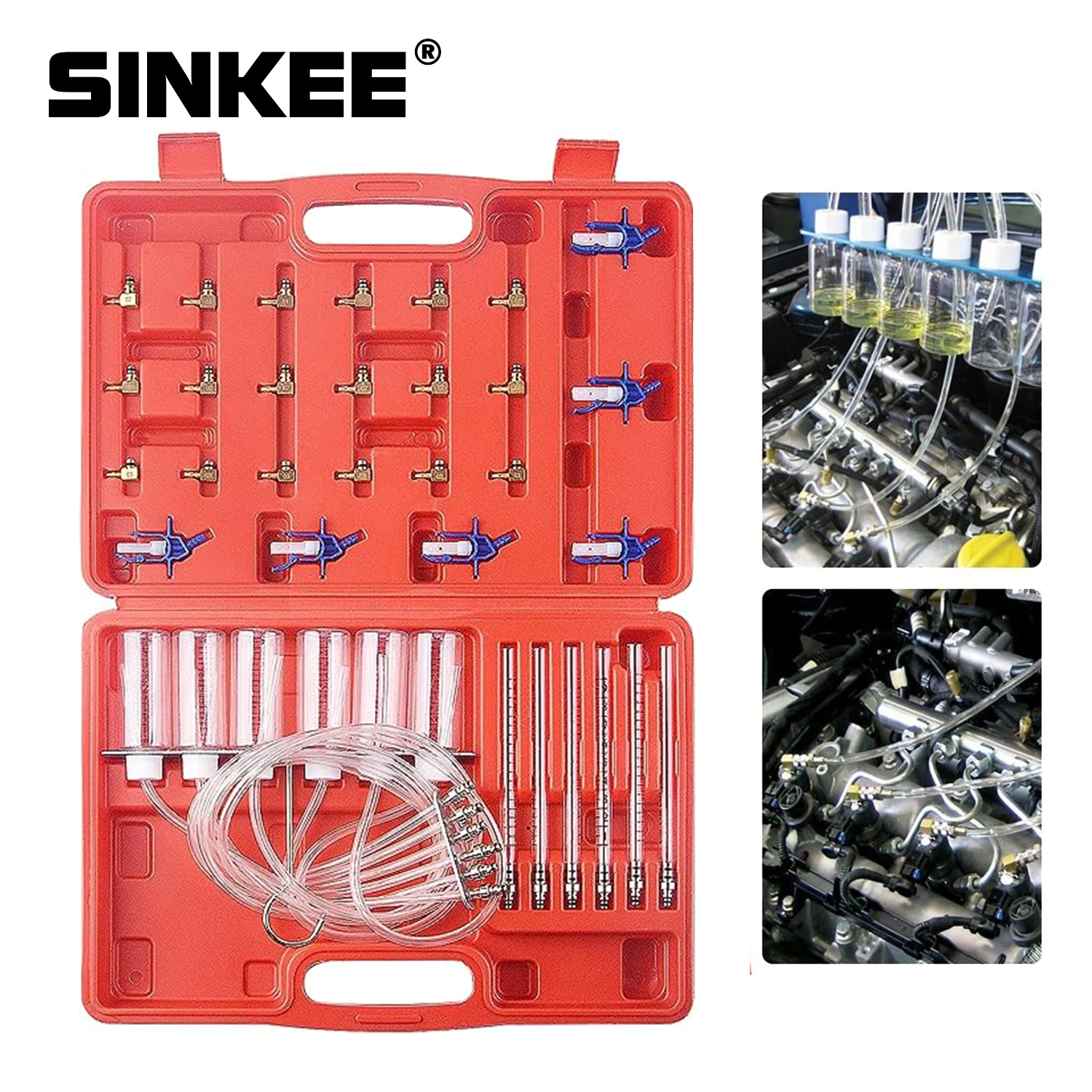 Ce kit est conçu pour comparer la quantité de carburant qu'un injecteur retourne à un réservoir de dépôt. En comparant la quantité de carburant dans chaque récipient, il est possible d'isoler un injecteur endommagé.