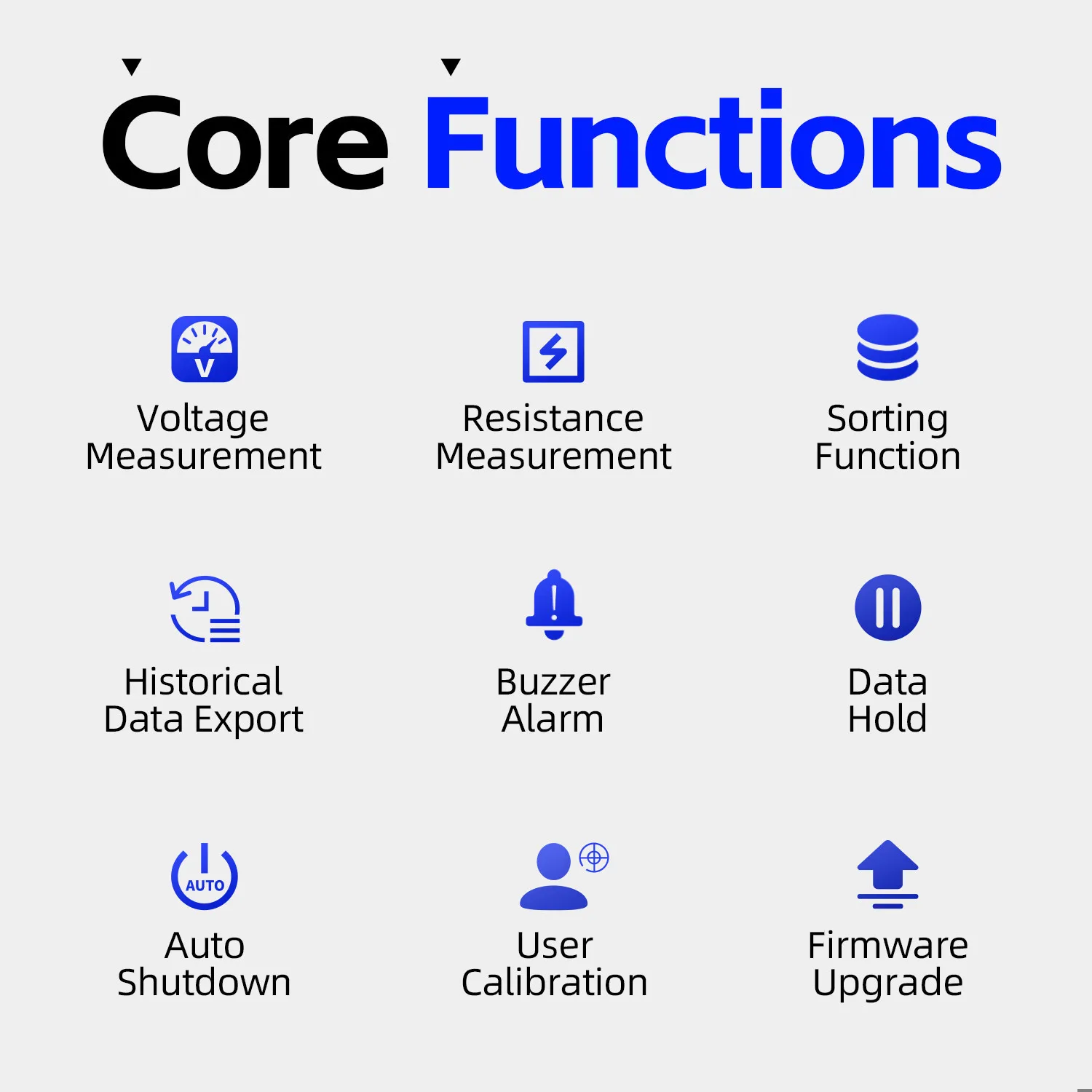 compteur, conçu avec précision, pratique à transporter.L'appareil peut tester automatiquement les valeurs de résistance interne et de tension simultanément, avec les résultats de mesure affichés à l'écran.Les utilisateurs peuvent également ajuster manuellement la plage de tension et de résistance.Le produit dispose d'un mode de tri, filtrant automatiquement les batteries bonnes et défectueuses en fonction des seuils définis par l'utilisateur.Il prend également en charge les enregistrements historiques et l'exportation de tableaux de données de mesures historiques.