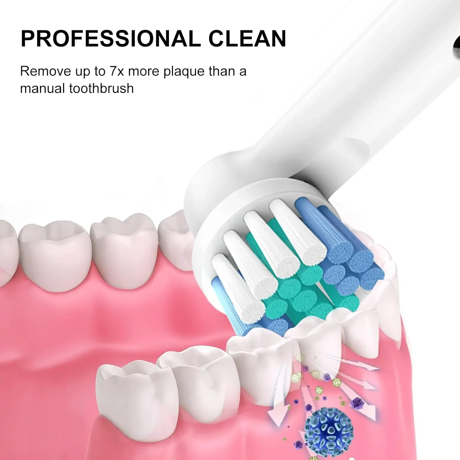 [Extra Soft Dupont Bristles] Specially made of soft dupont bristles with end-rounded design, our toothbrush heads easily remove teeth stains and whiten your teeth without hurting your teeth and gums.