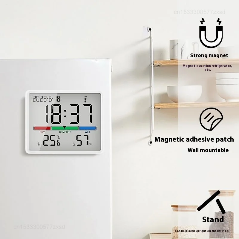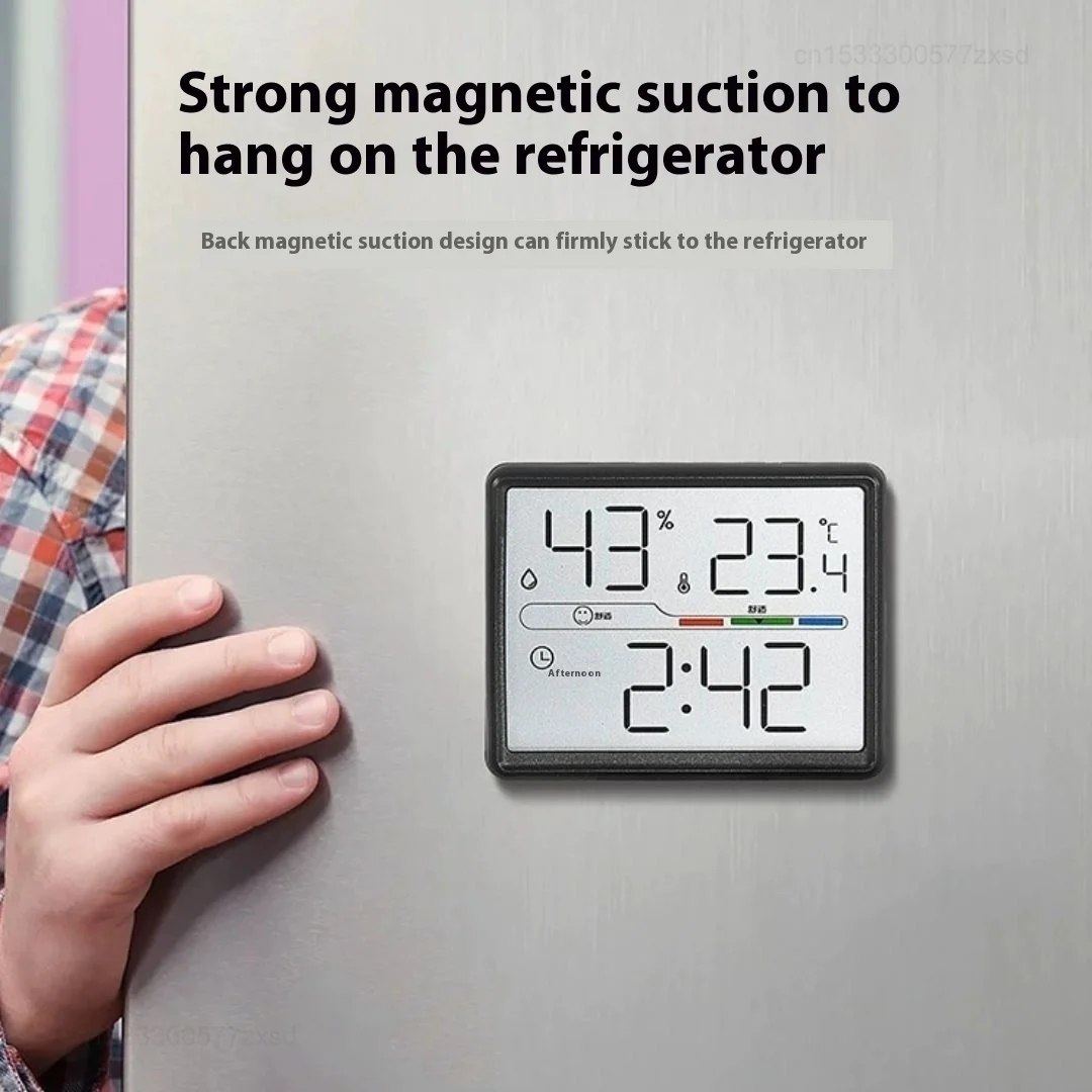 Horloge à aspiration magnétique, compteur électronique de température et d'humidité pour la maison, chambre de bébé intérieure, horloge murale à affichage numérique LCD