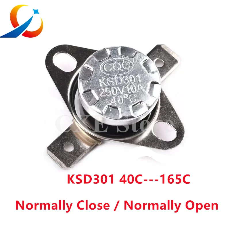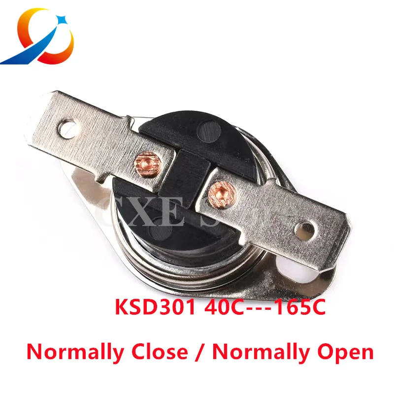 Thermostat bimétallique KSD301 10A, 2 pièces, interrupteur de température, contrôle thermique 40 ~ 160C degrés Celsius, réinitialisation manuelle, Thermostat 40 65 90 95