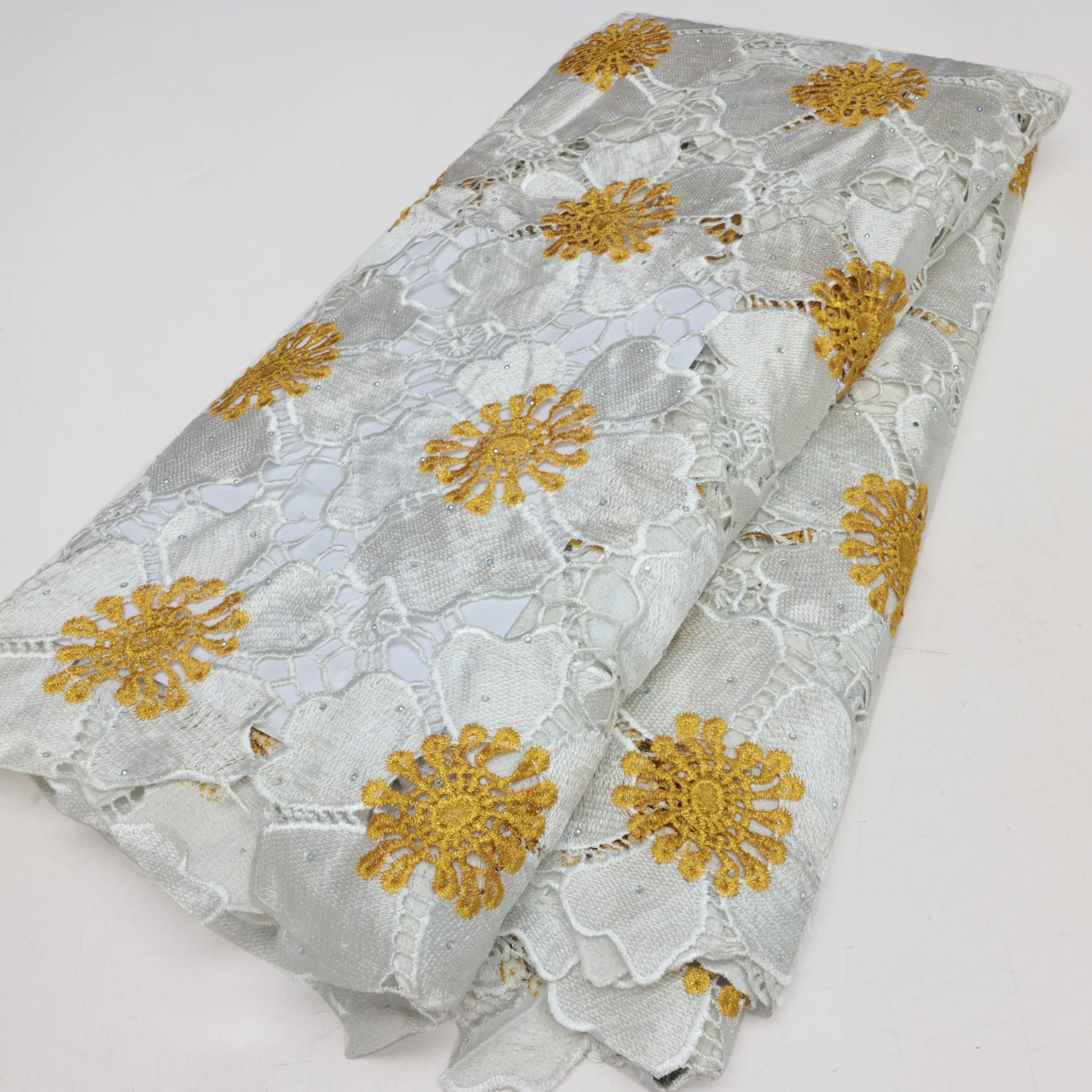 Tissu Africain en Dentelle Guipure avec Trous pour Robes de Soirée de Mariage, Broderie NigWin, Soluble dans l'Eau, 5Yards