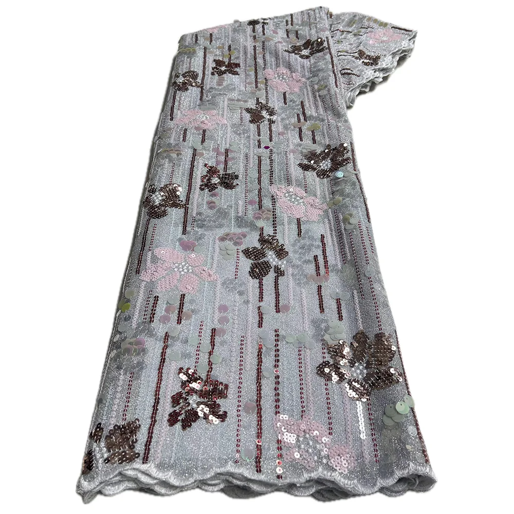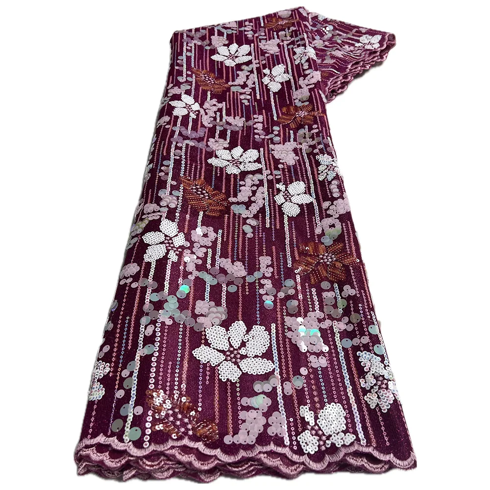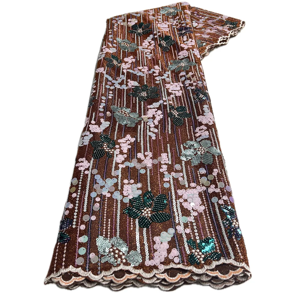 Flocage africain Velours Organza Dentelle Texturée Maille Tulle Filet Français Tissu avec Paillettes Paillettes Nigéria Vêtements Occasionnels