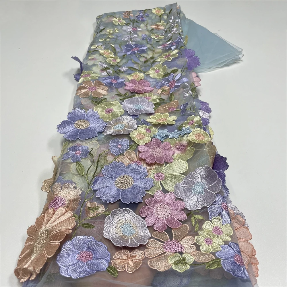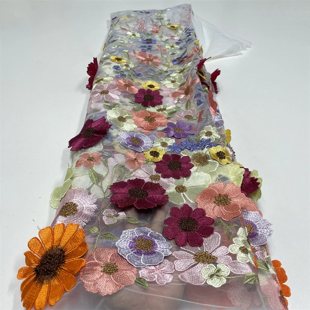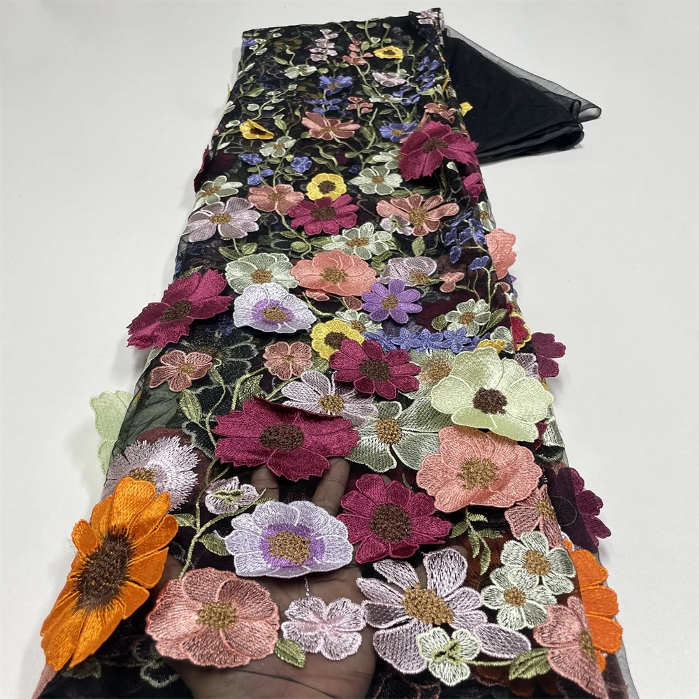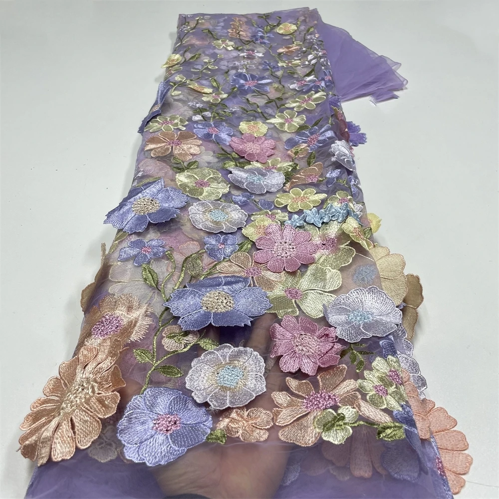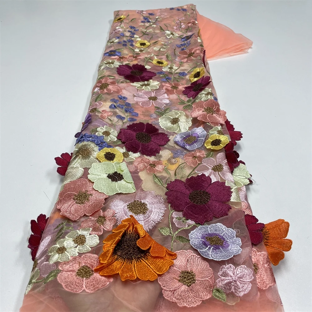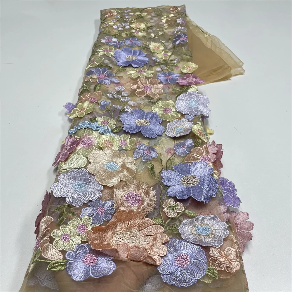 Tissu africain nigérian en dentelle 3D de luxe, 5yards, dubaï, Tulle perlé à la main, paillettes brodées, pour mariage