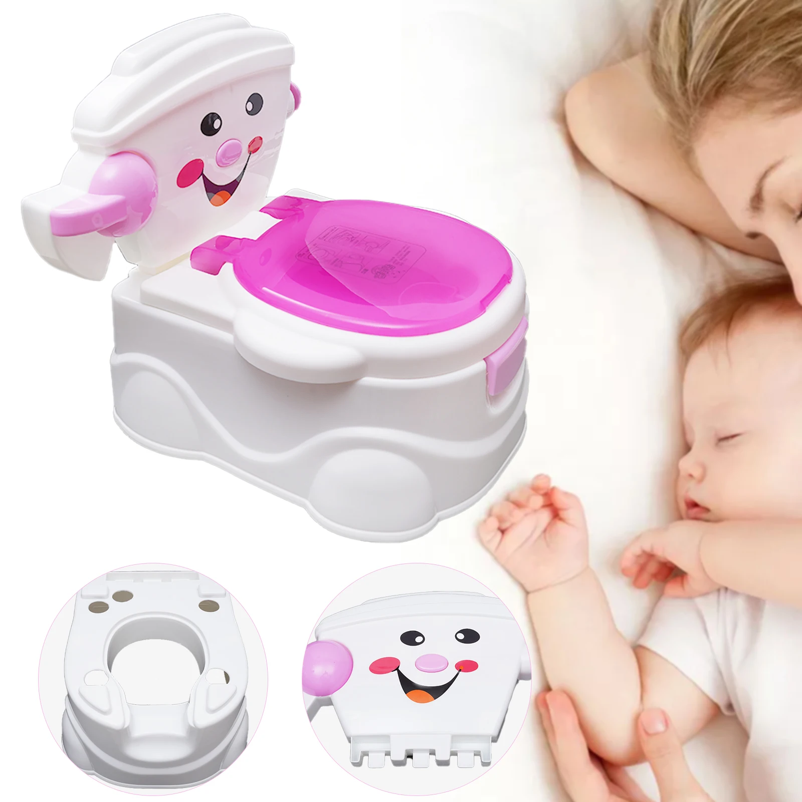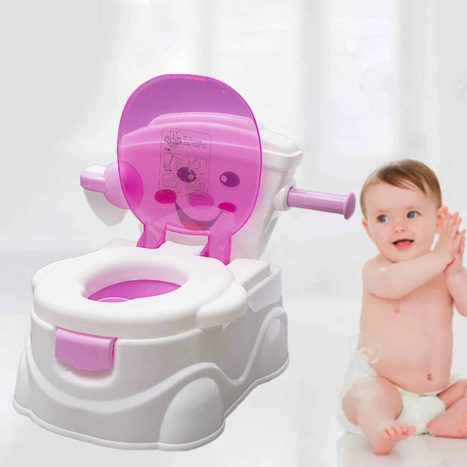 aspect de couleur, qui peut attirer l'attention des enfants et leur permettre d'accepter plus facilement son utilisation.La poignée de toilette simulée à côté de la face souriant rend le produit plus réaliste.