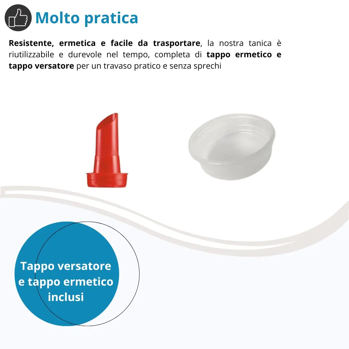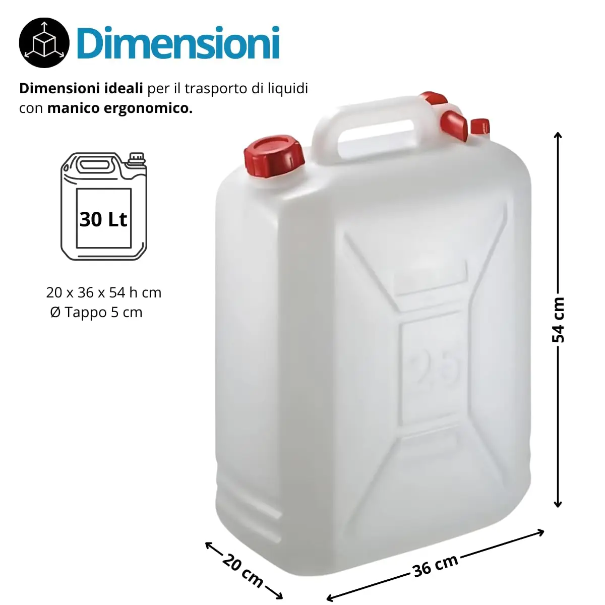 Le réservoir en plastique de 25 litres est un organisateur robuste et polyvalent, fabriqué en polyéthylène haute densité (HDPE), qui garantit solidité et durabilité dans le temps.Il est équipé de deux bouchons : une vis hermétique et un verrouillage, qui assurent une fermeture sûre, évitant les déversements et la contamination.La conception ergonomique comprend une poignée intégrée avec une prise confortable pour un transport et une manœuvre faciles.
