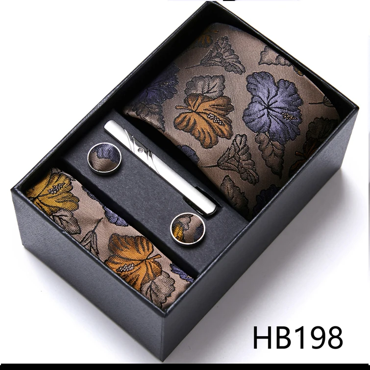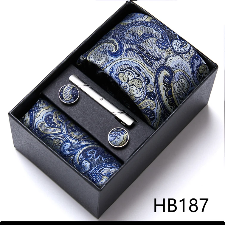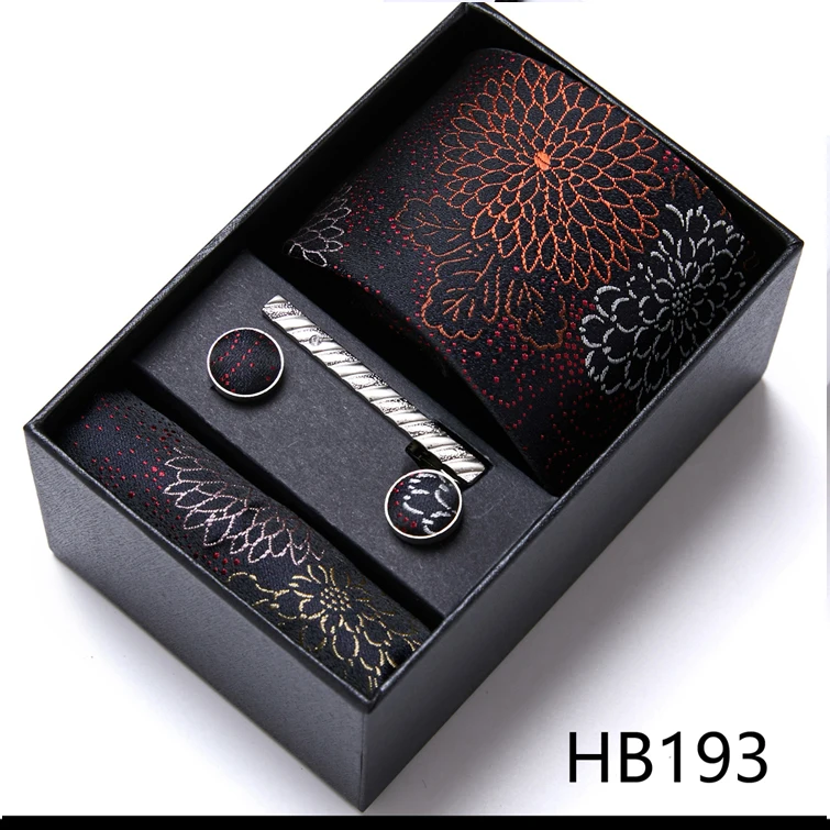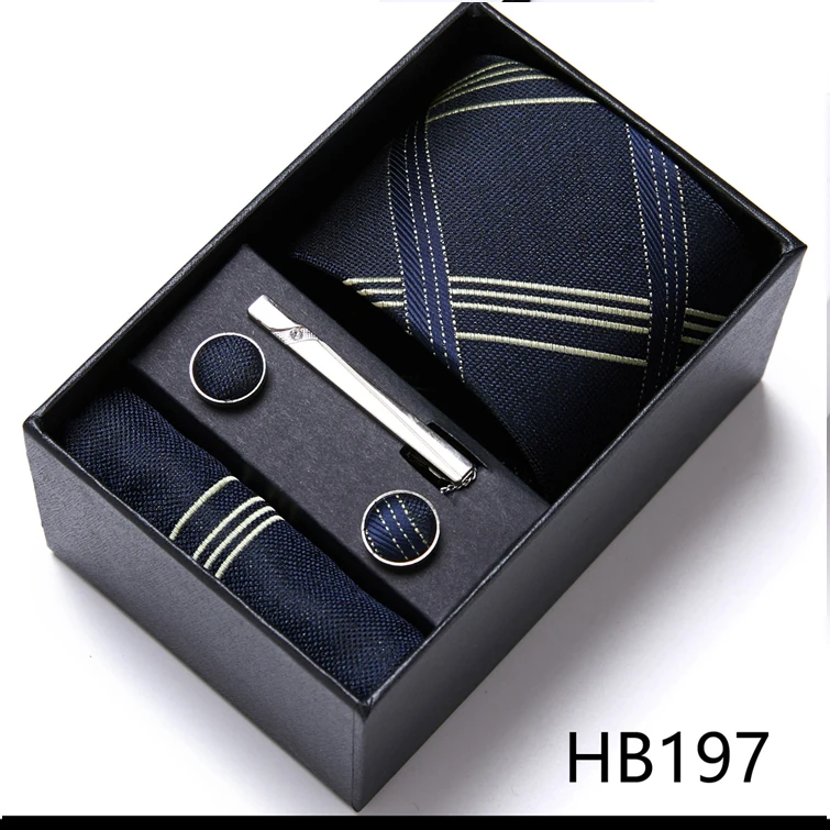 Condition : 1 cravate neuve, 1 mouchoir, 1 paire de boutons de manchette et 1 pince à cravate aléatoire.