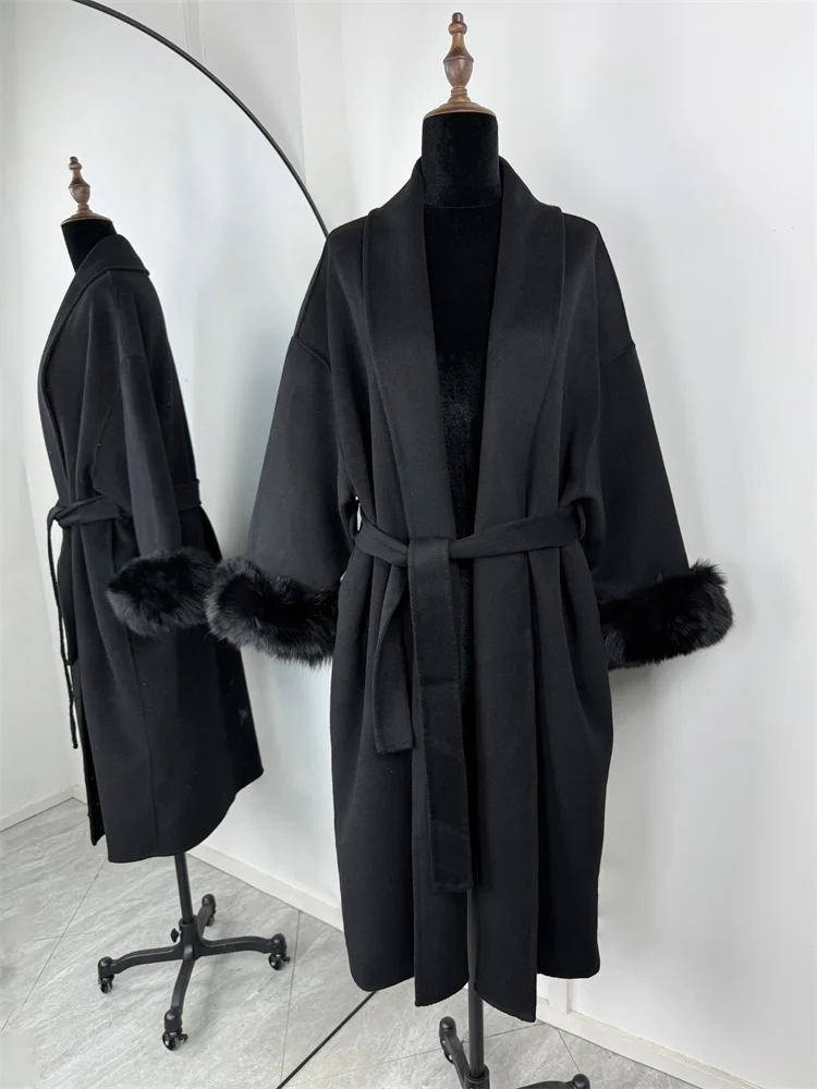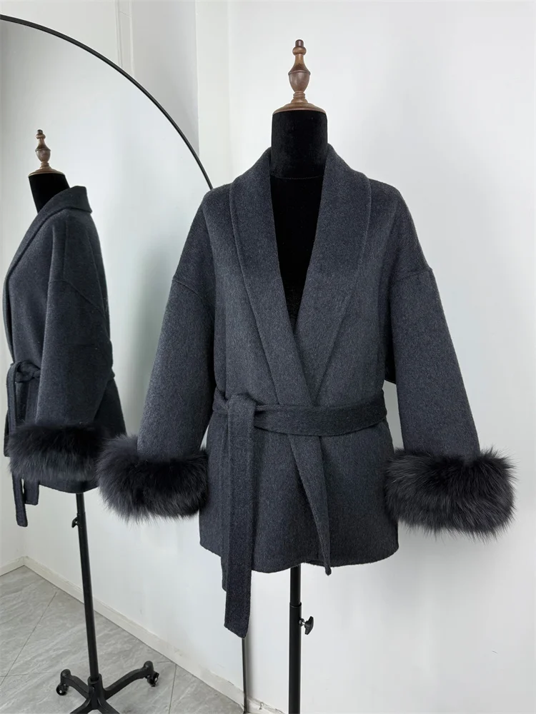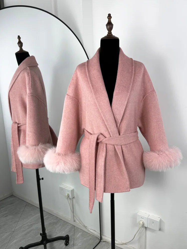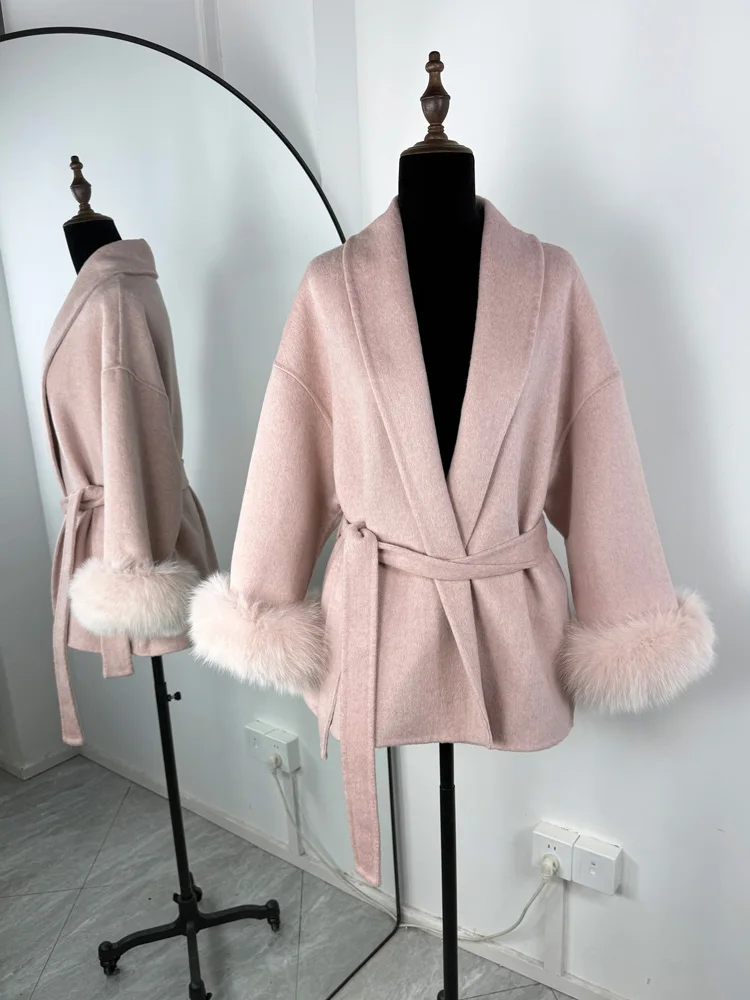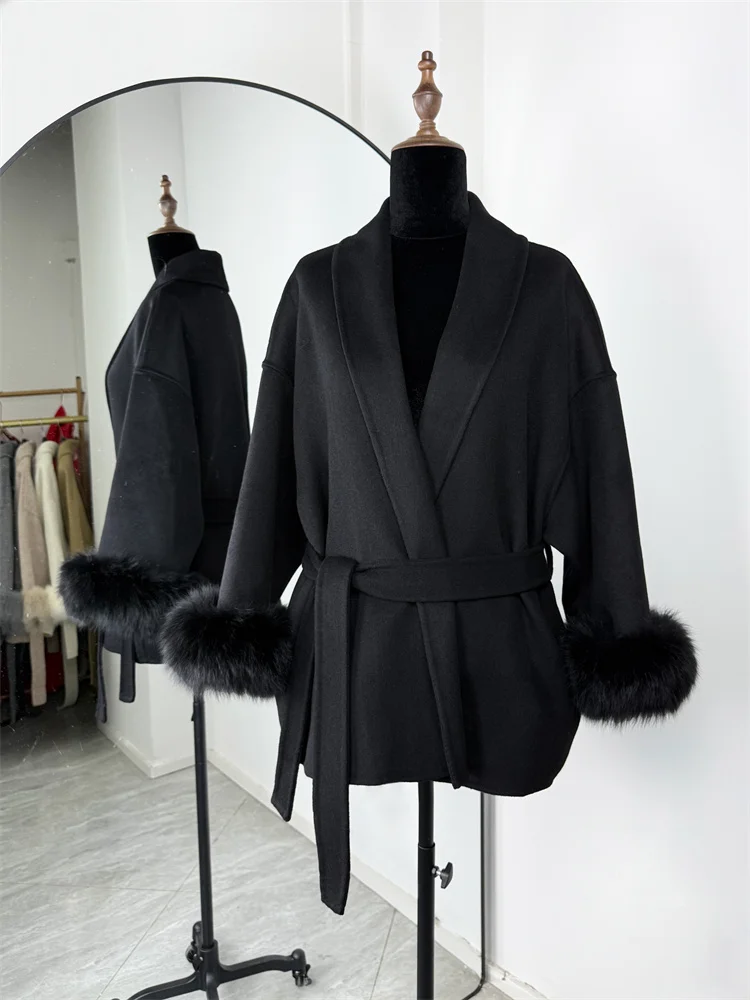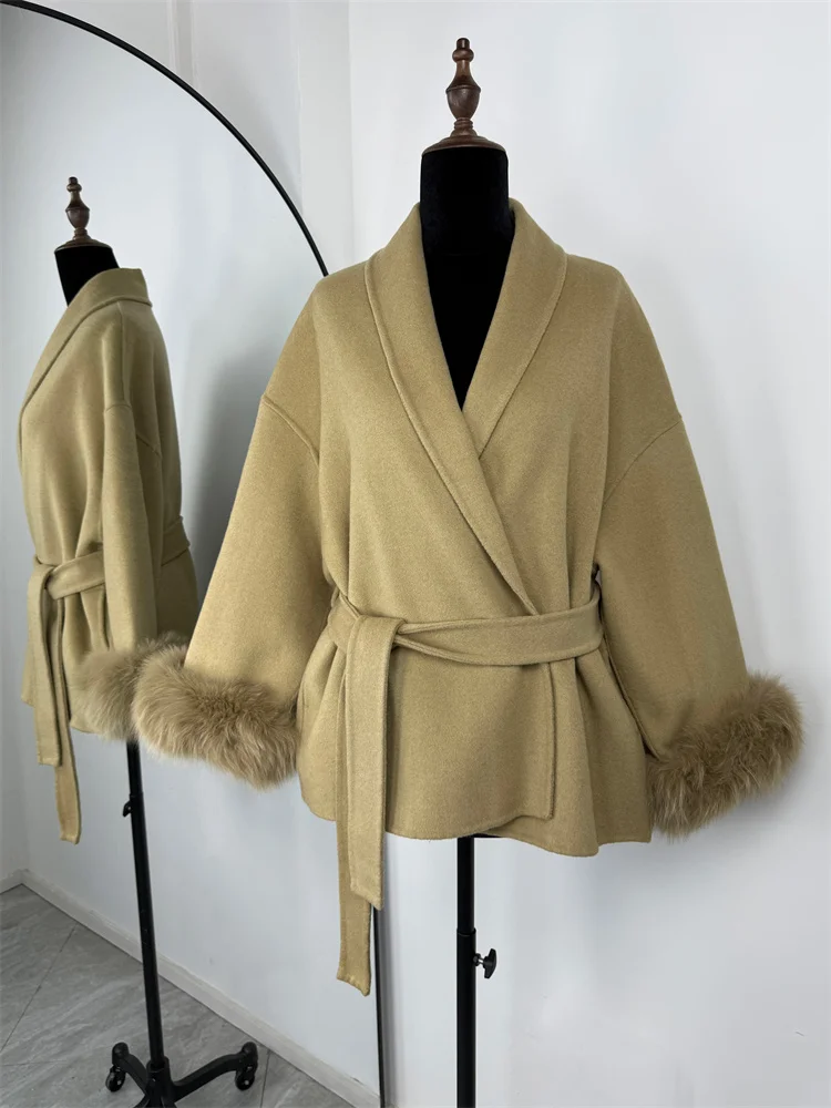Tossy Fox fourrure laine pardessus femmes manteau court bureau dame élégant Double face laine manteau 2025 nouveau Cardigan vestes laine ample