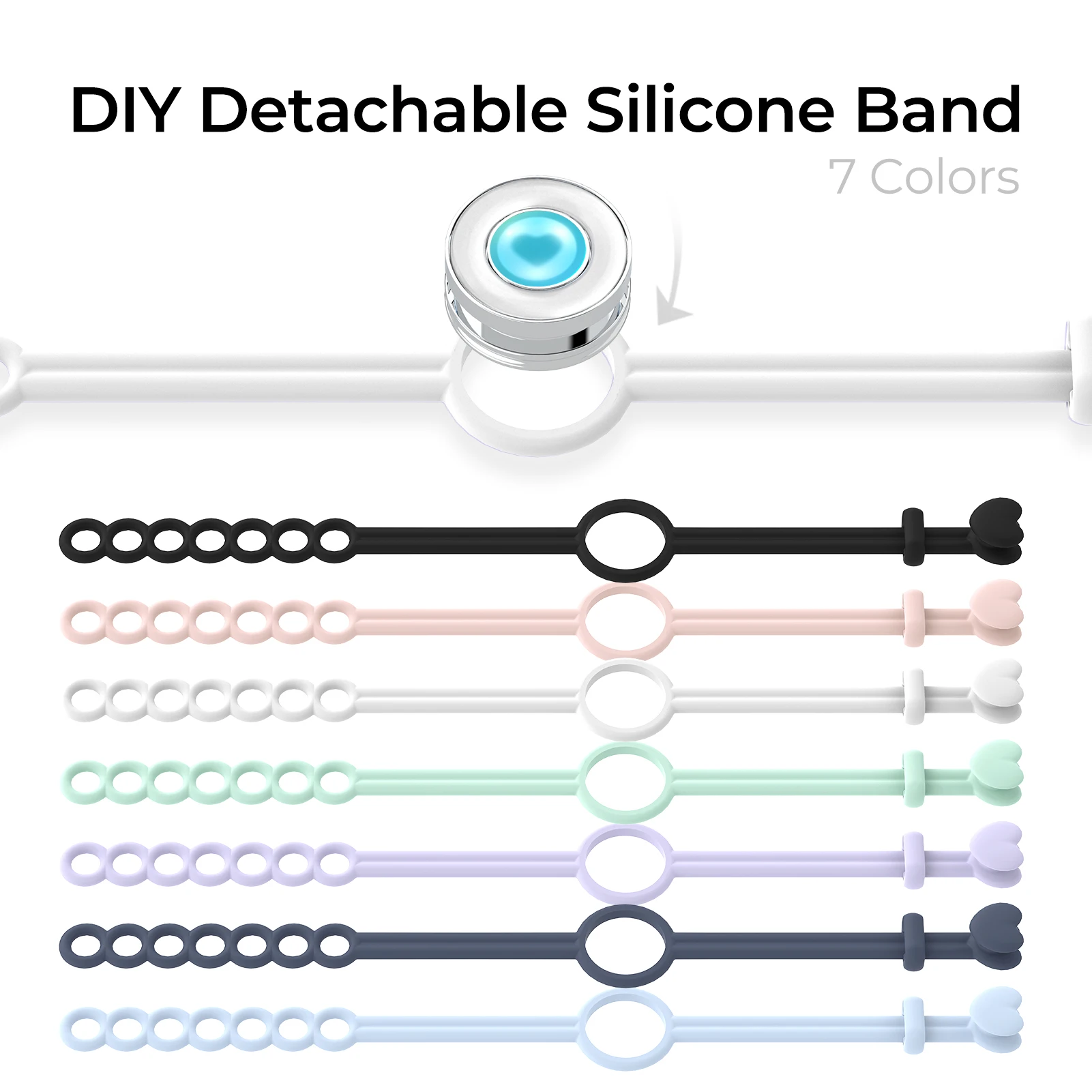 Le fermoir de longueur réglable est conçu comme un petit cœur et des formes circulaires sont intégrées dans le bracelet.