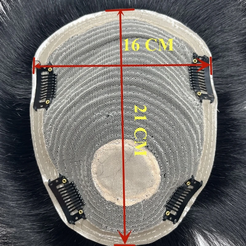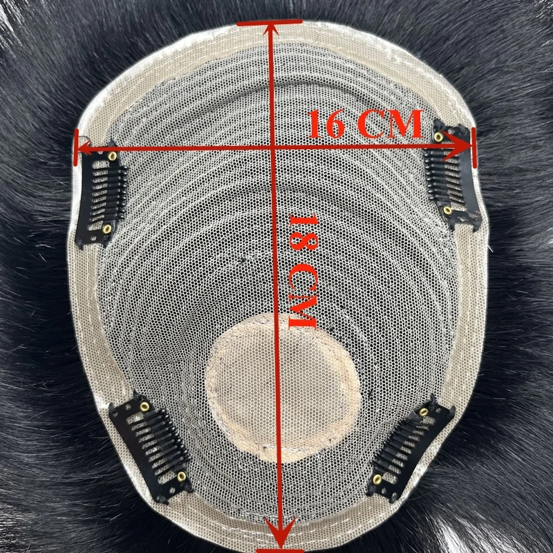 Comment choisir la taille ; si vous utilisez des clips, veuillez vous assurer que la longueur et la largeur de la dentelle sont 2 cm plus grandes que la zone de votre partie perte de cheveux.