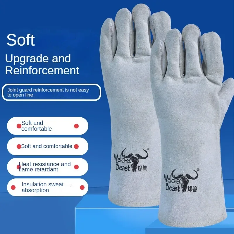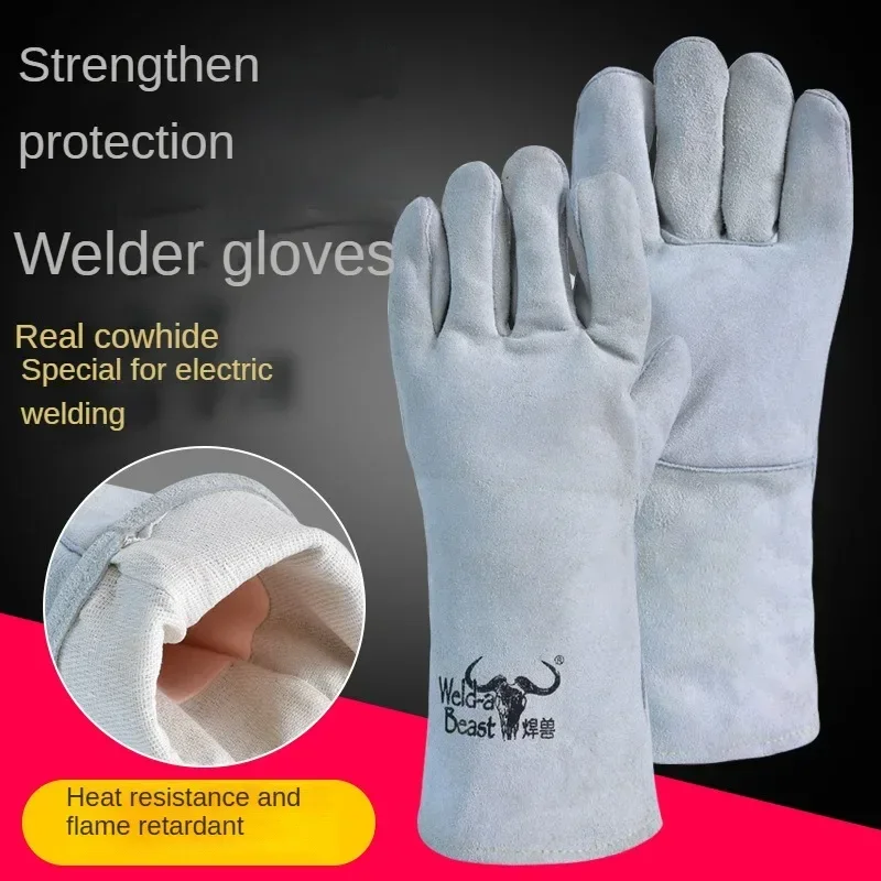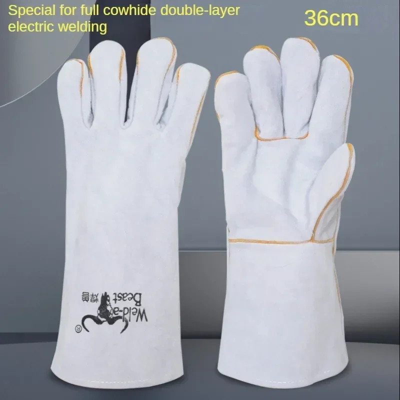 Tous les gants de soudage électriques en peau de vache, bête de soudage, Double épaisseur, isolation thermique, soudeur allongé résistant à l'usure