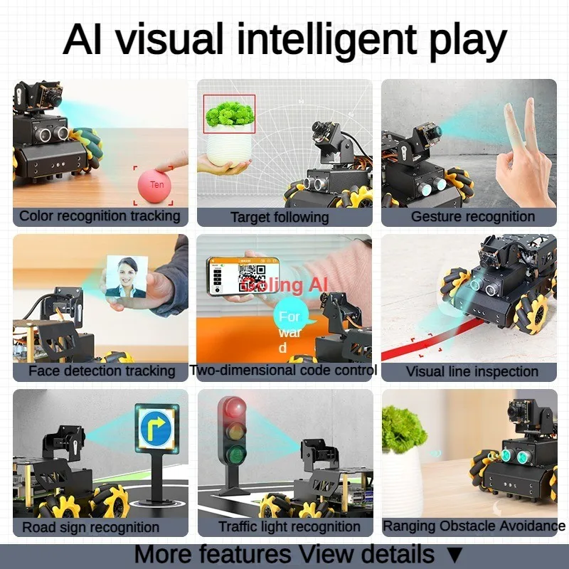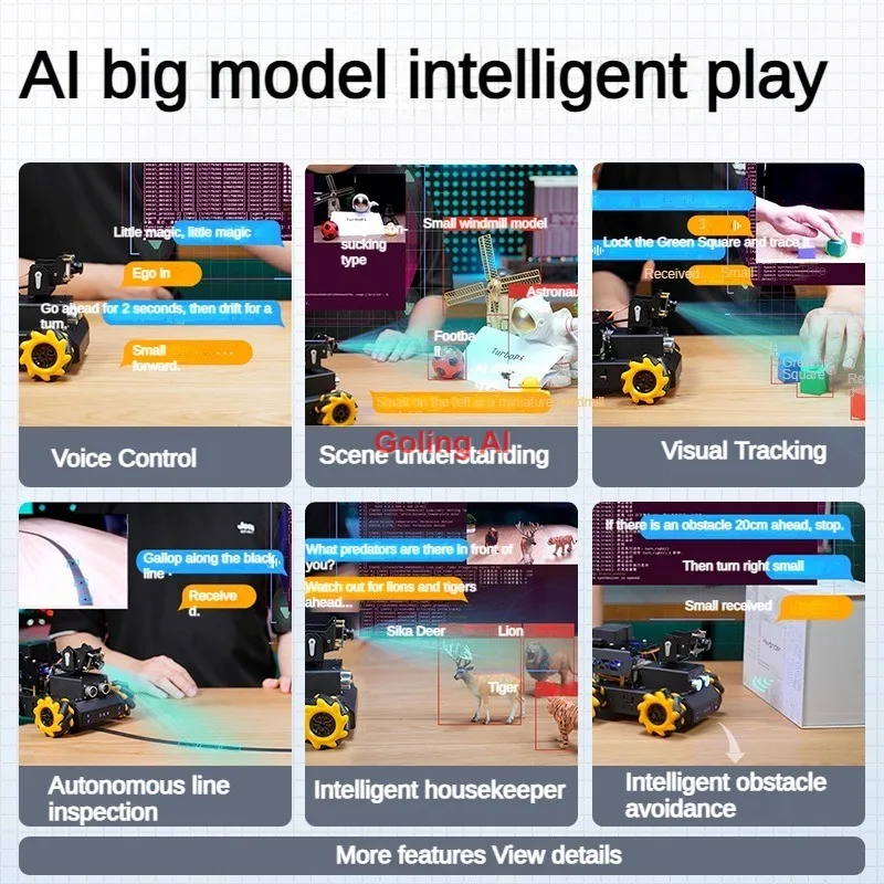 La TurboPi AI Edition s'exécute sur le système d'exploitation ROS2 et intègre un grand modèle AI multimodal ainsi qu'un module d'interaction vocale AI.Il peut comprendre les environnements, planifier des actions et exécuter des tâches de manière flexible, permettant des applications d'intelligence incarnées plus avancées.Le forfait officiel comprend plus de 260 cours d'apprentissage interactifs et une multitude de cas d'expériences de développement secondaire, avec un code sous-jacent open source pour raccourcir le cycle d'apprentissage et de développement de votre projet.De l'entrée aux niveaux avancés, TurboPi vous aide à créer vos propres projets innovants alimentés par l'IA!
