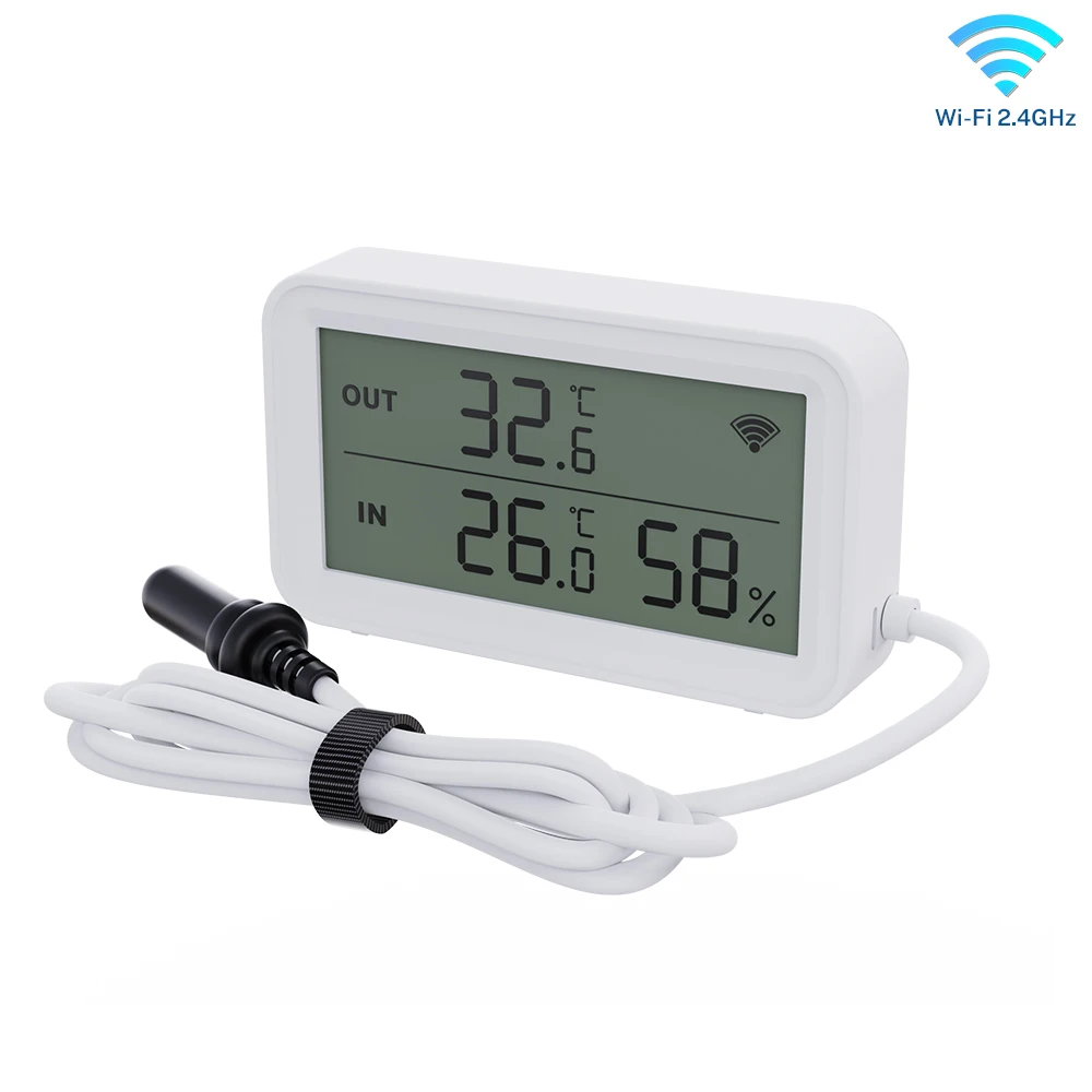 Tuya – capteur de température et d'humidité WiFi, avec sonde externe, pour maison intelligente, hygromètre, surveillance par application pour plantes, Aquarium, vignoble