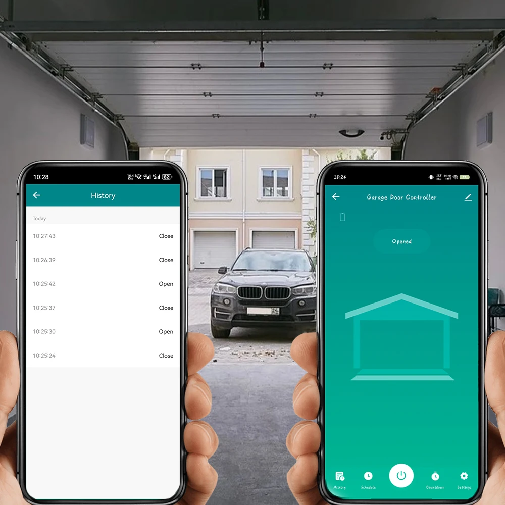 Ouvrez ou fermez automatiquement le garage avec vos horaires ou compte à rebours.Détecte automatiquement l'état de la porte de garage de manière plus sûre sans faux fonctionnement.