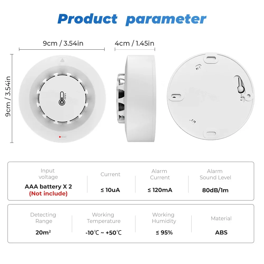 WiFi Smoke Detector Alarm Fire Smoke + Temperature Humidity Detection 80db Sound for Alexa Google Home Tuya Smart Life