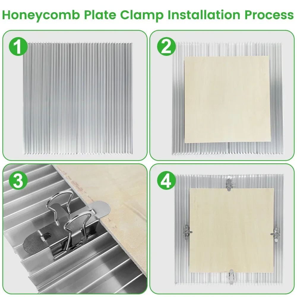 Chaque petit panneau en nid d'abeille mesure 400x100 mm, et quatre panneaux peuvent être combinés pour former un panneau en nid d'abeille complet de 400x400 mm.Cette conception modulaire vous permet de remplacer uniquement les pièces usées, ce qui vous permet d'économiser de l'argent à long terme.