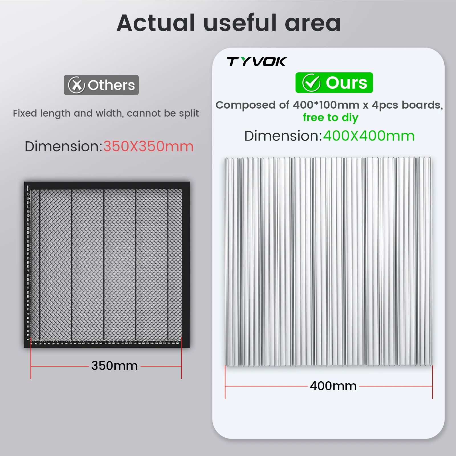 Les plateaux de plateforme en nid d'abeille présentent une conception assemblée avec une taille et un axe Y réglables.Cela signifie plus d'espace et de flexibilité pour vos projets de gravure DIY.