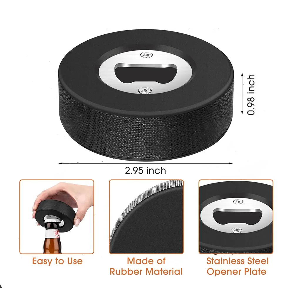 UICE 1pc ouvre-bouteille de bière rondelle de Hockey sur glace 160g matériau en caoutchouc double usage pour l'entraînement de divertissement de Hockey sur glace