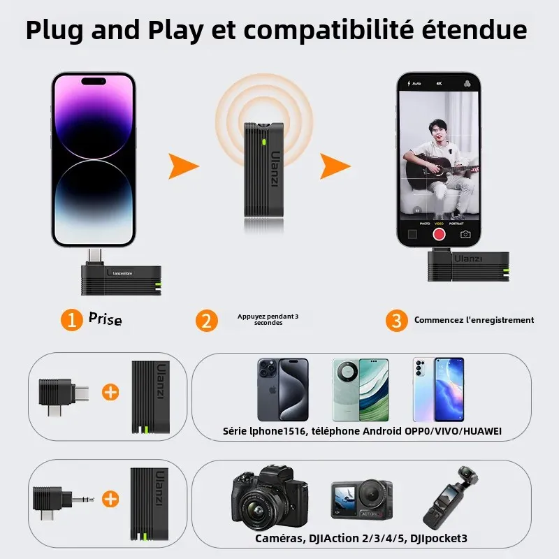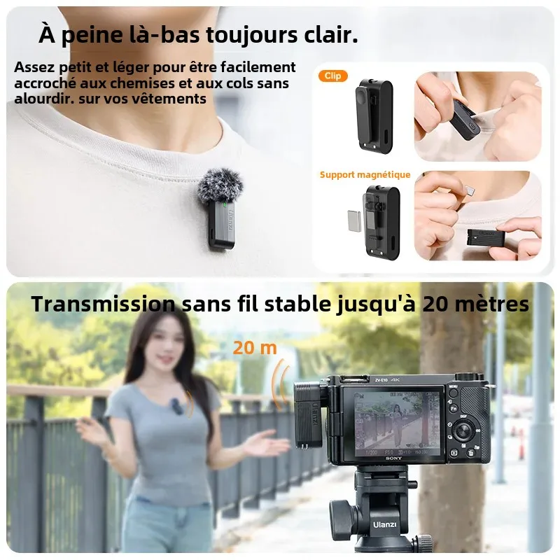 Ulanzi A100 Wireless Lavalier Microphone Professional 20M Audio Video Voice Recording Mic for iPhone 16 15 Android Phone Camera Laptop