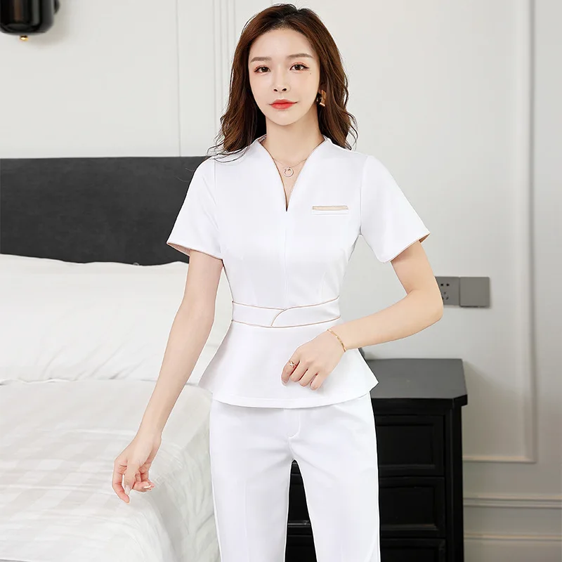 Esthetic Uniform Summer Short Sleeve Beauty Salon Suit Women's Spa Beautician Clothing Hotel Massage Workwear Korean Overalls-BC
