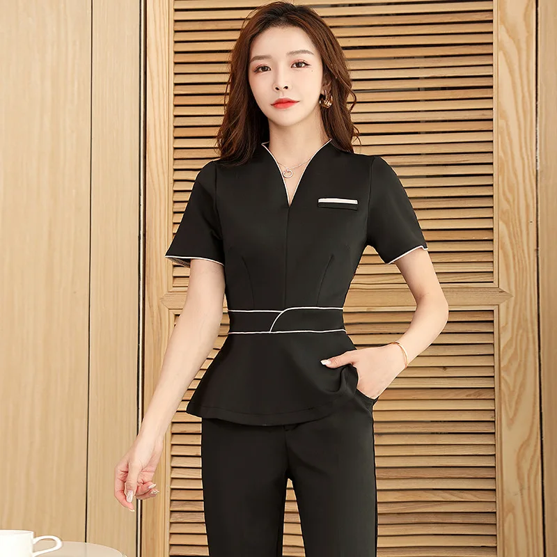 Uniforme esthétique d'été à manches courtes, costume de Salon de beauté pour femmes, vêtements d'esthéticienne de Spa, vêtements de travail de Massage d'hôtel, salopette coréenne-BC