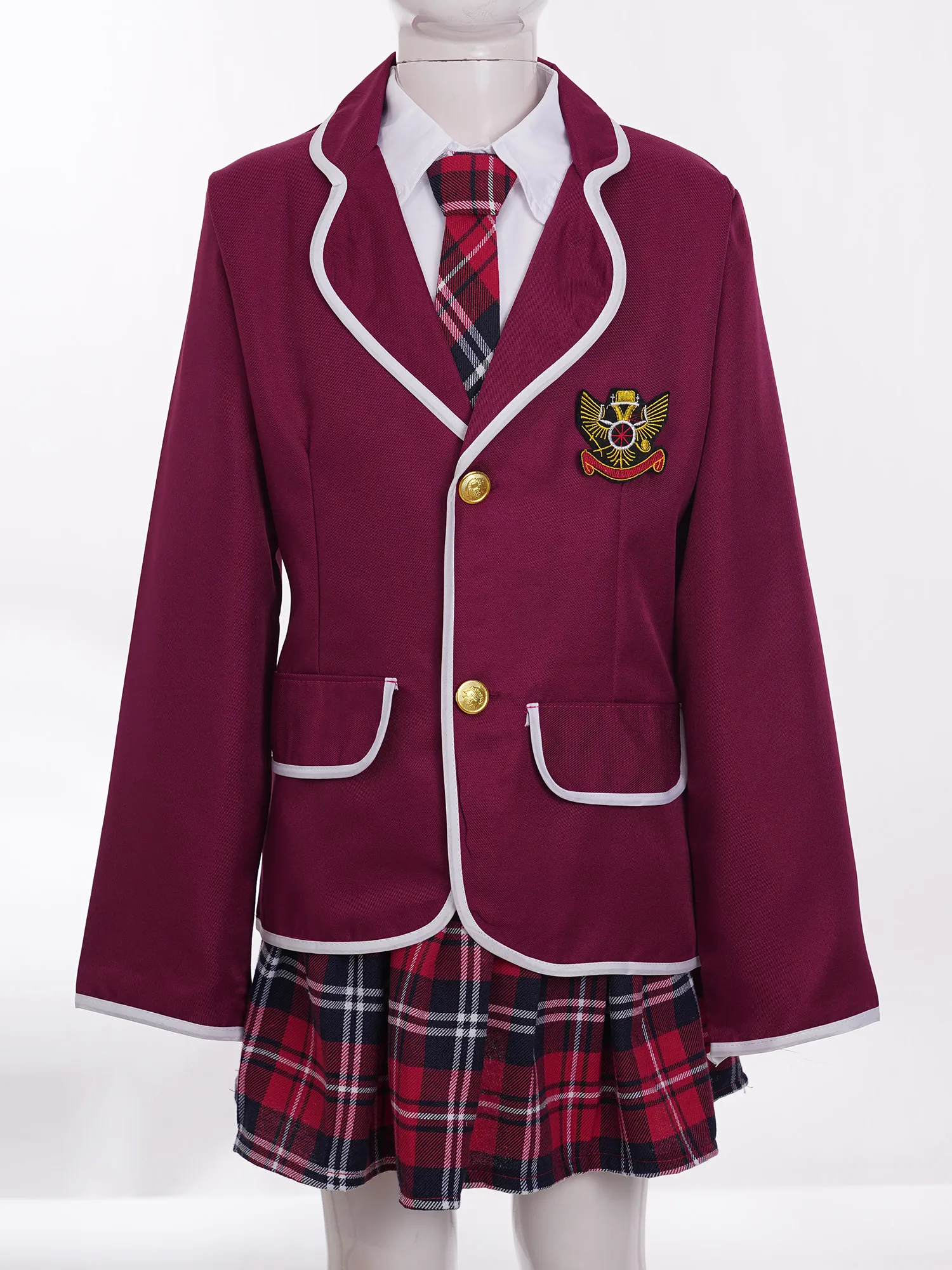 Uniformes scolaires pour enfants filles, Costume de Cosplay Anime, manteau à manches longues avec chemise et cravate, ensemble de Mini jupe, 110-160