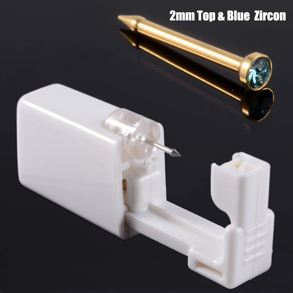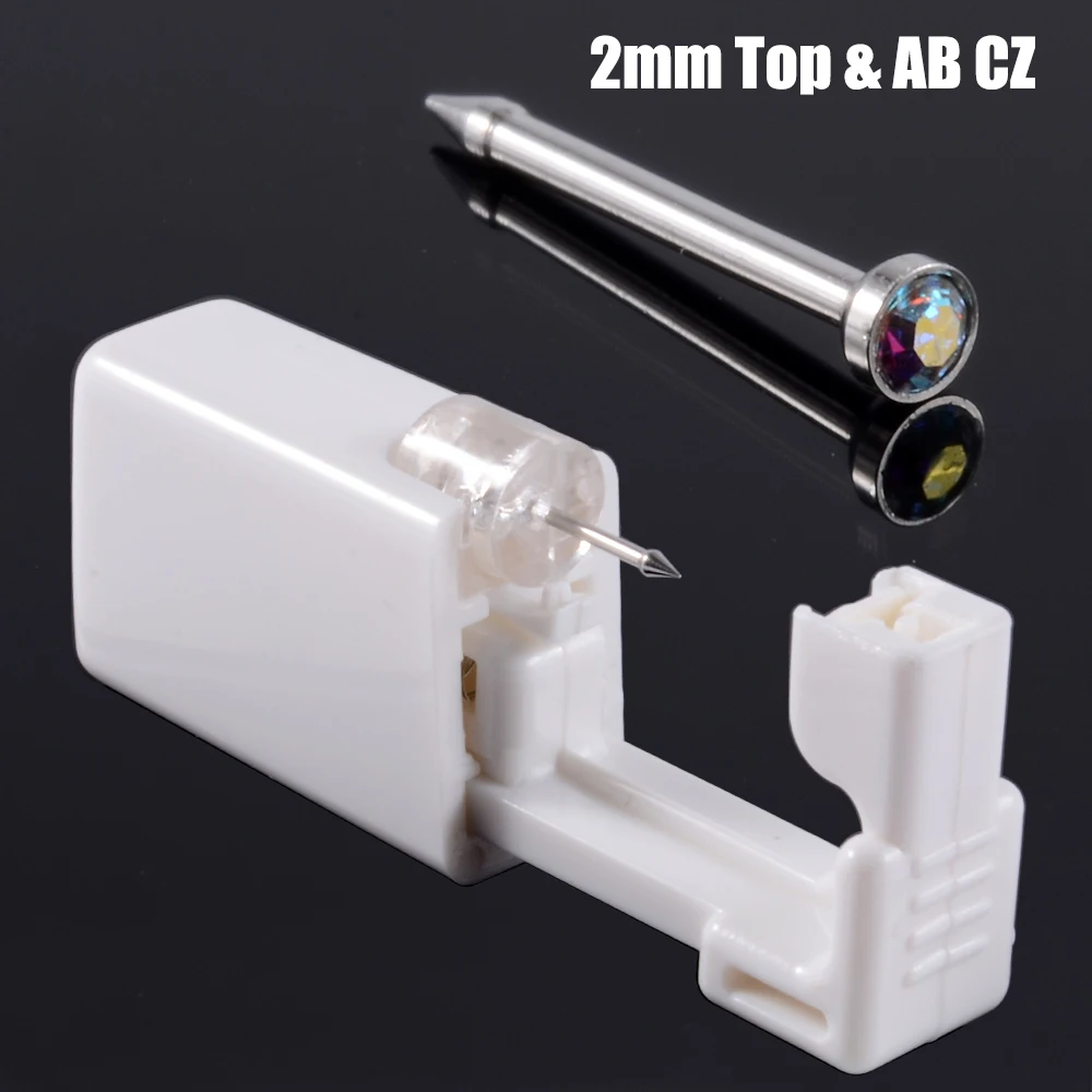 Unité de perçage stérile jetable et sûre pour clous de nez, pistolet de perçage, Kit de Machine à outils, boucles d'oreilles CZ, bijoux pour le corps, facile à utiliser, 0.8mm