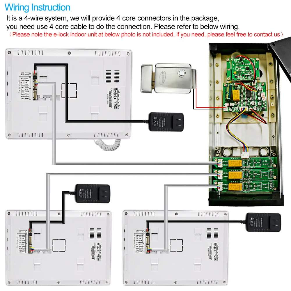 Ces unités extérieures ne peuvent fonctionner qu'avec un moniteur intérieur de type connexion à 5 ou 4 fils. Pour votre référence, les moniteurs intérieurs présentés dans l'image ci-dessous sont compatibles avec ces unités extérieures. Si vous possédez déjà un moniteur intérieur, veuillez vérifier s'il est compatible ou non avec notre unité extérieure. Si vous n'êtes pas sûr, n'hésitez pas à nous contacter avant de commander.