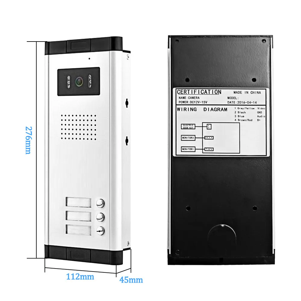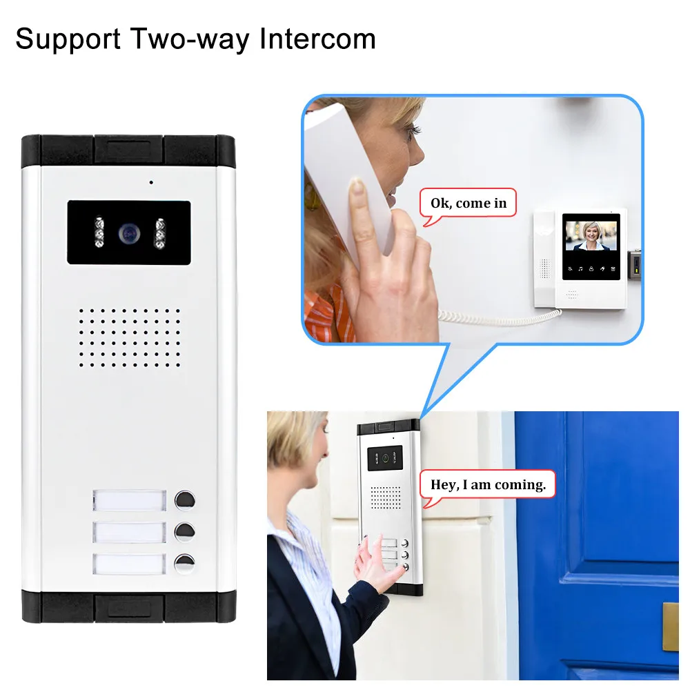 Il y a 3 boutons d'appel sur la caméra, chacun peut se connecter à un moniteur indépendamment.