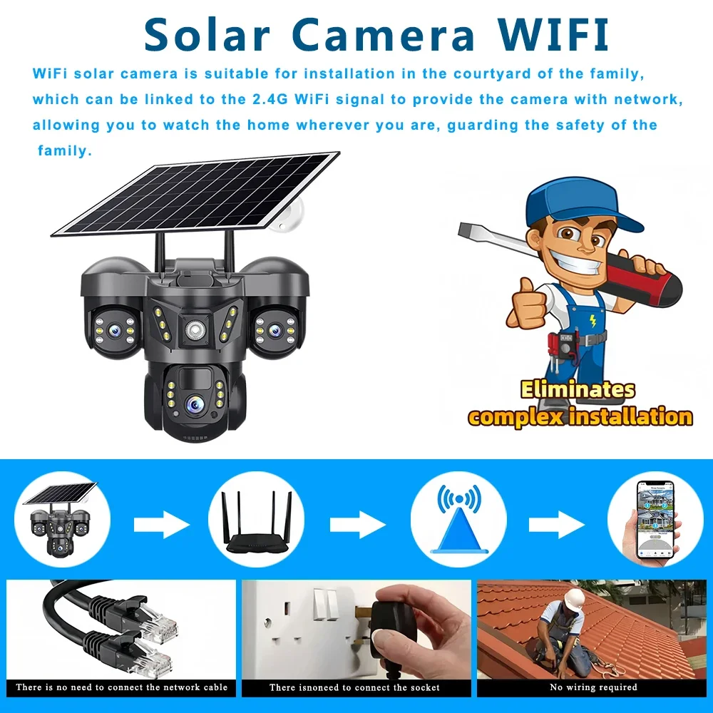 Choisissez une caméra de surveillance solaire.AUCUN câblage, AUCUNE alimentation requise.avec batteries intégrées et charge solaire continue pour 365 jours d'utilisation ininterrompue.Facile à installer et à utiliser.