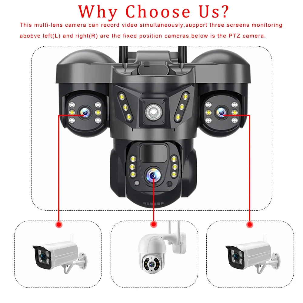 La fonction unique à trois écrans vous permet de visualiser à la fois grand angle et zoomé simultanément sur une seule interface, rationalisant la gestion de la surveillance.Cette conception innovante simplifie la surveillance en éliminant le besoin de basculer entre plusieurs écrans ou caméras, vous garantissant ainsi un aperçu complet de votre propriété à tout moment.