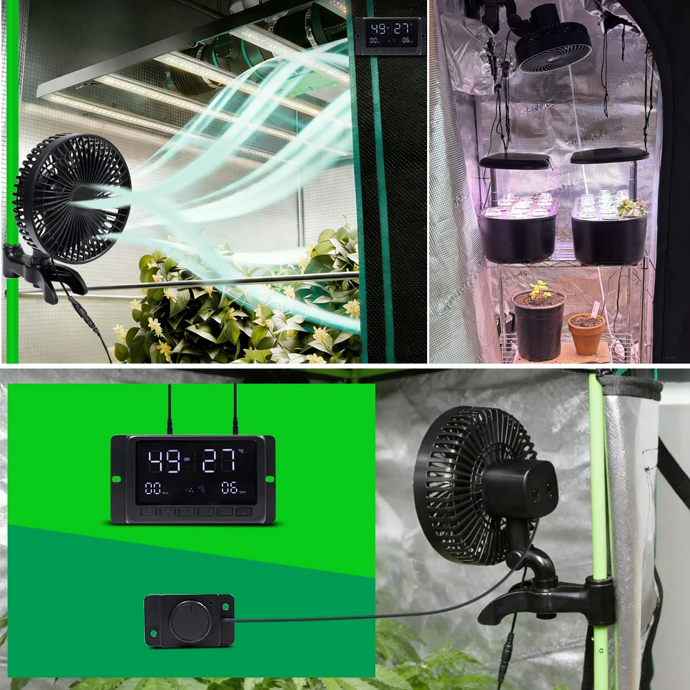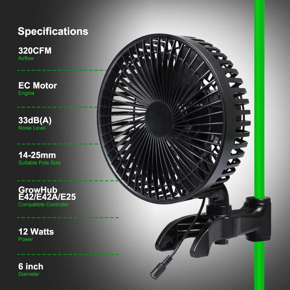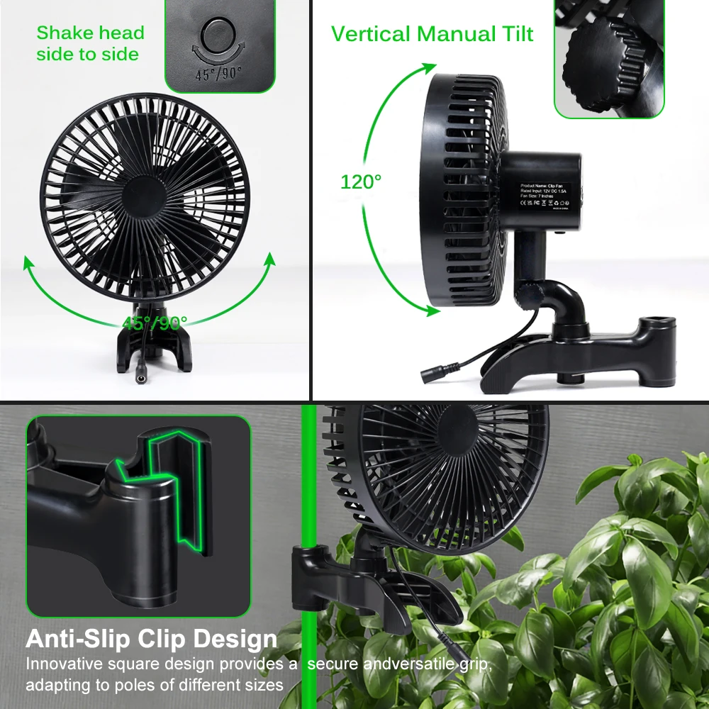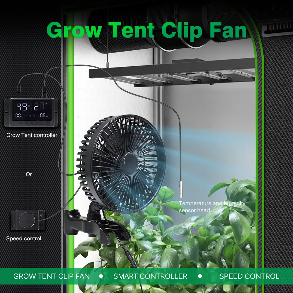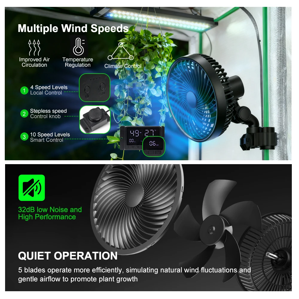 Ventilateur à Clip pour Tente de Culture, Moteur EC, Contrôle Intelligent, Ventilateur Oscillant Puissant, Vitesses de Ventilation Multiples pour la Circulation et le Refroidissement Hydroponiques