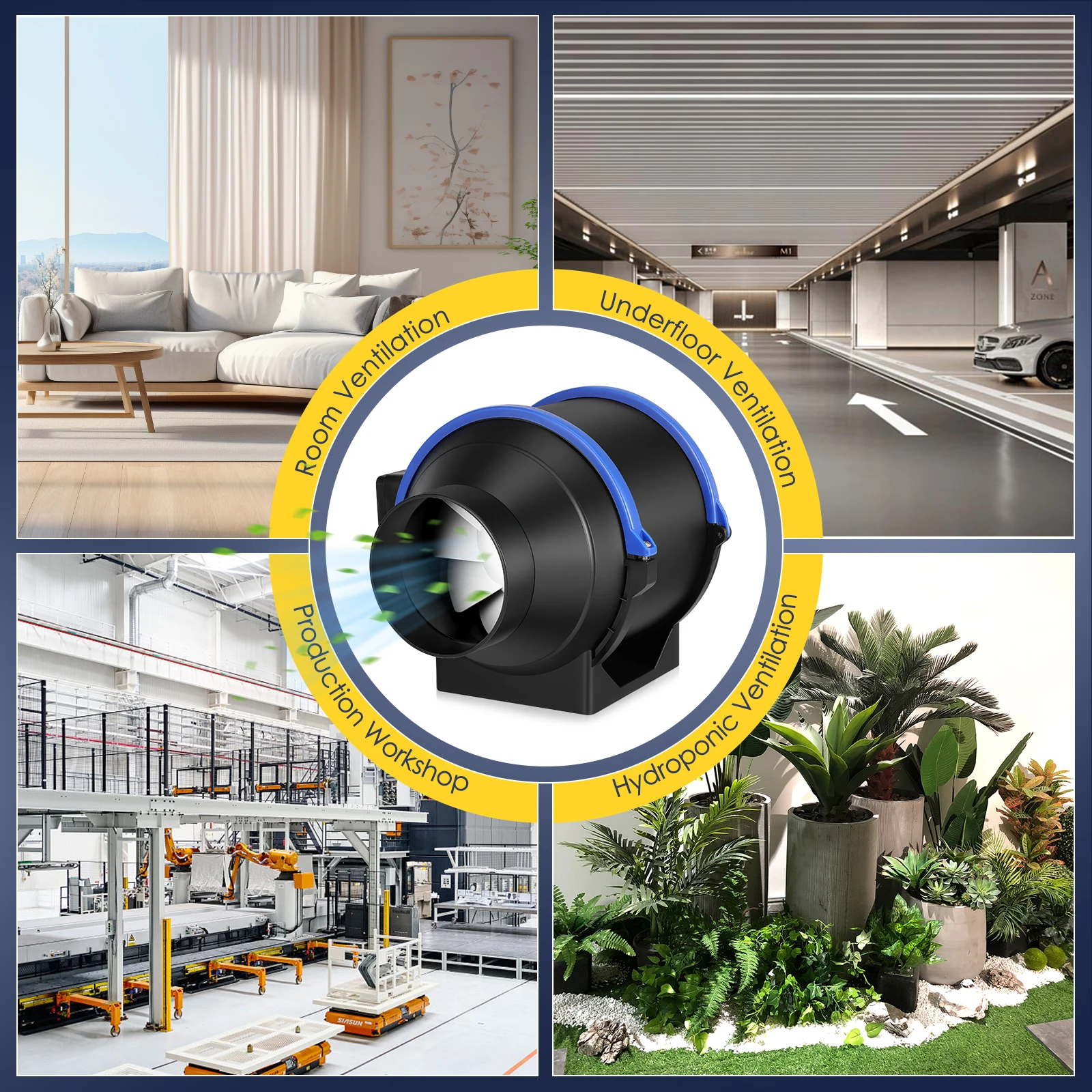 【Applications polyvalentes】 Notre ventilateur de conduit en ligne est idéal pour nettoyer et rafraîchir l'air des installations intérieures, de l'agriculture verticale, des systèmes de chauffage et de refroidissement et de la filtration de l'air.Créez facilement l’environnement parfait.