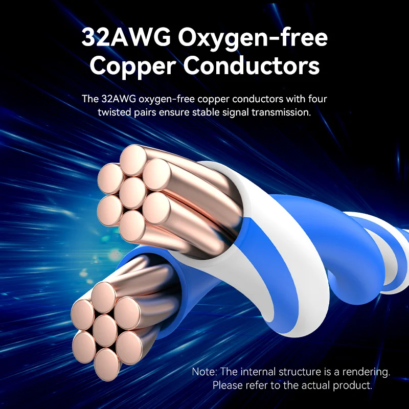 The 32AWG Oxygen-free copper conductors with four twisted pairs ensure stable signal transmission