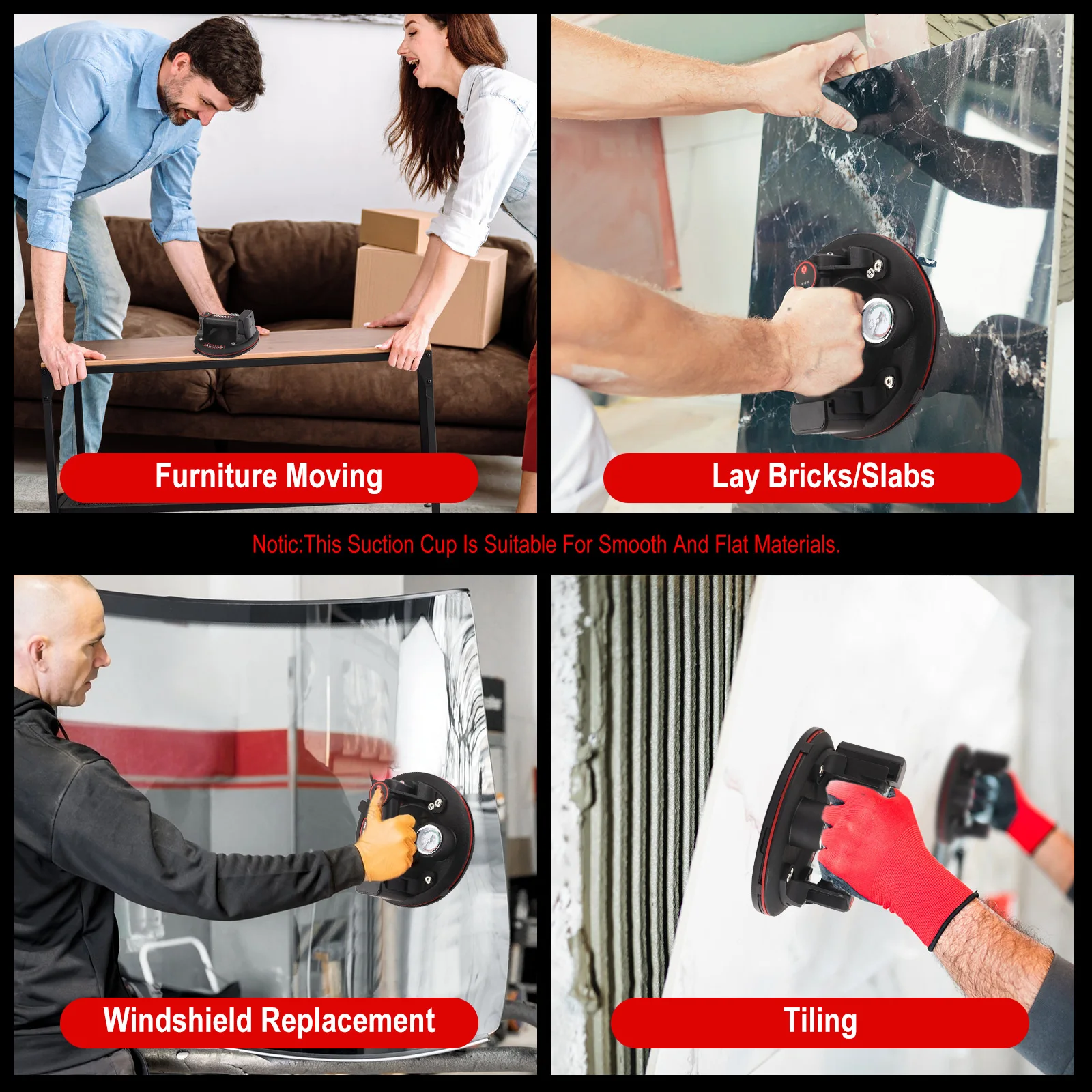Haute qualité L'aspirateur est fabriqué en caoutchouc inodore et extra résistant et les poignées en plastique ABS sont plus résistantes à l'usure et ont un effet antidérapant.Il est particulièrement adapté au transport d'aquariums, de carrelage, de verre, de stratifiés et de panneaux.Idéal pour les industries de la construction, de la fabrication et de l'automobile.