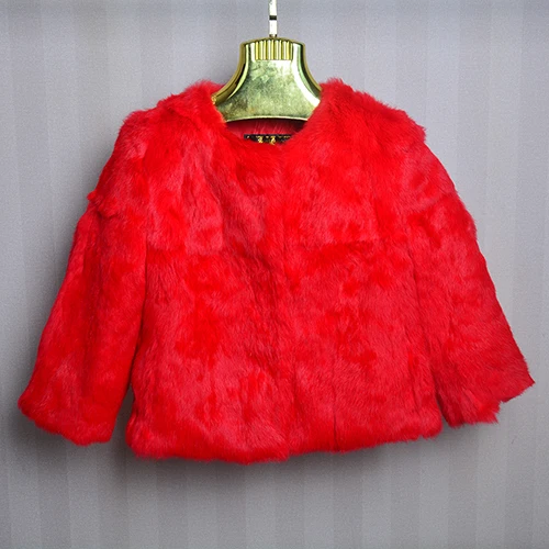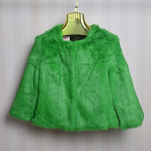Véritable pleine peau veste de fourrure femmes conception manteau de fourrure de lapin naturel manteau de fourrure de peau entière col rond mode mince mince manteau de fourrure de lapin