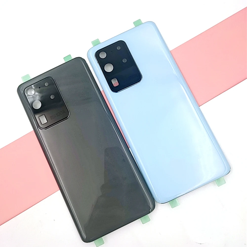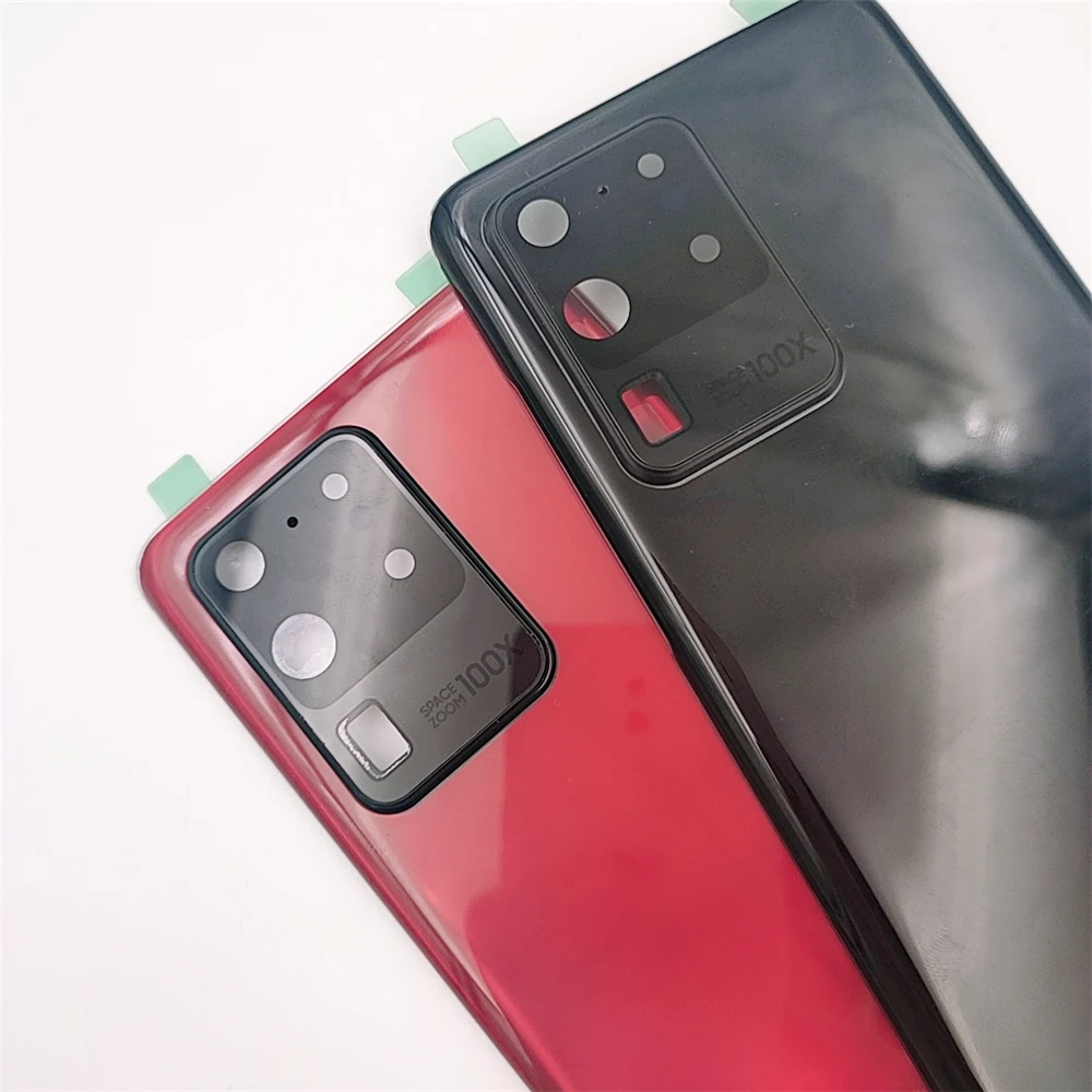 Verre arrière d'origine pour Samsung Galaxy S20 Ultra S20U 5G, coque de batterie, panneau de porte arrière, pièces de réparation et cadre d'objectif d'appareil photo