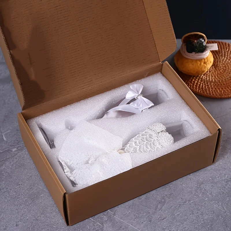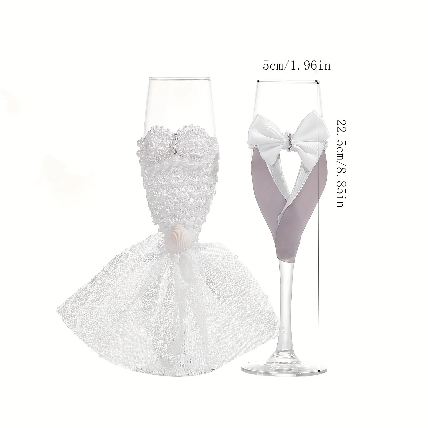 Verres à vin de mariage délicats, style robe de mariée, verres à Champagne, verres romantiques pour le banquet de la mariée et du marié