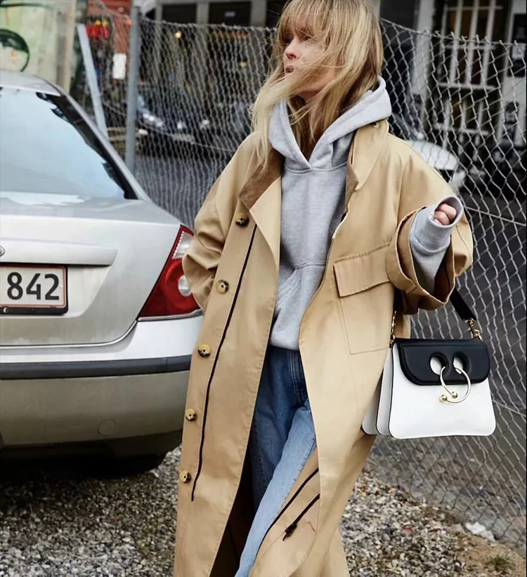 Veste blazer longue kaki pour femme, simple boutonnage, manches longues, col à revers, chaud, automne hiver