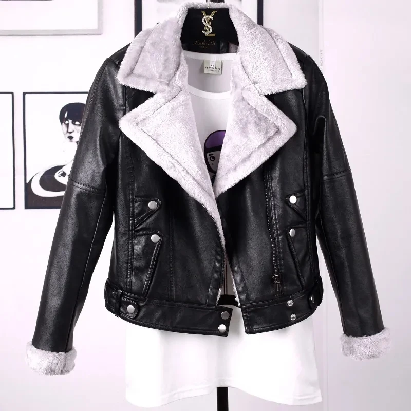 Veste courte en cuir pour femme, manteau à col de costume en velours épais, Style occidental PU 2025, nouvelle collection automne/hiver