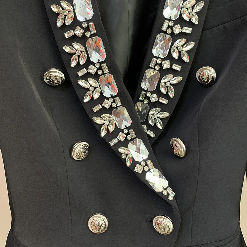Veste de créateur à double boutonnage pour femme, blazer à col châle, diamants, perles Strass, haute qualité, mode la plus récente, 2025