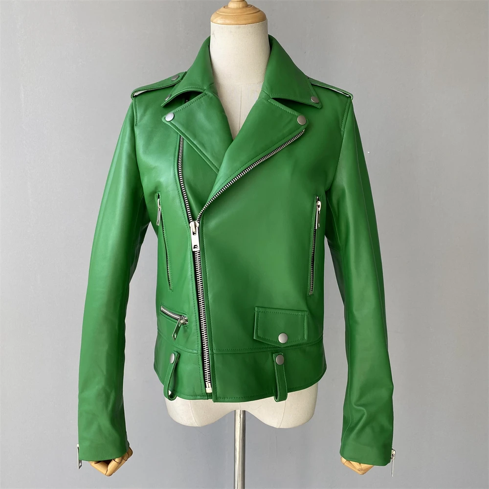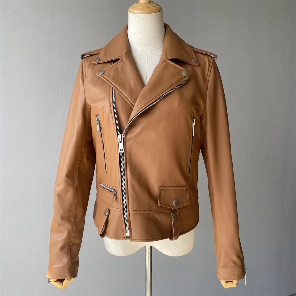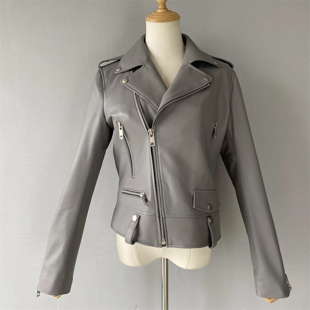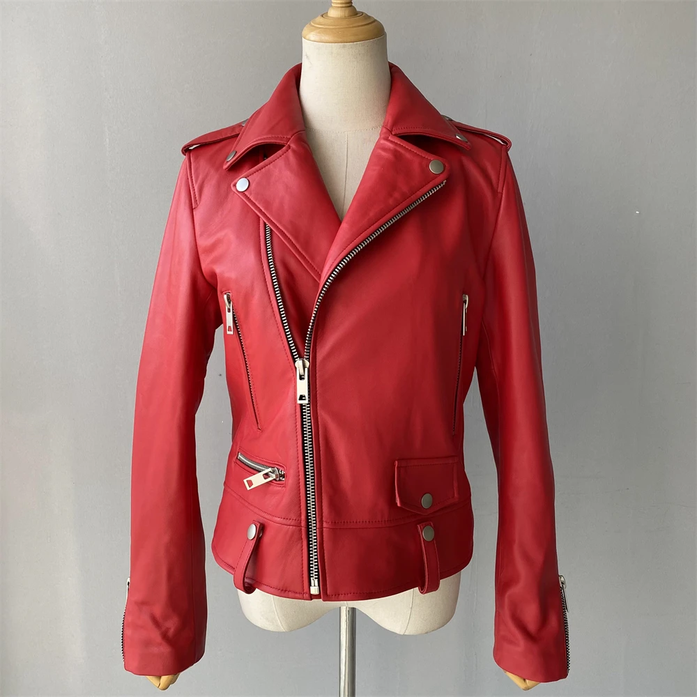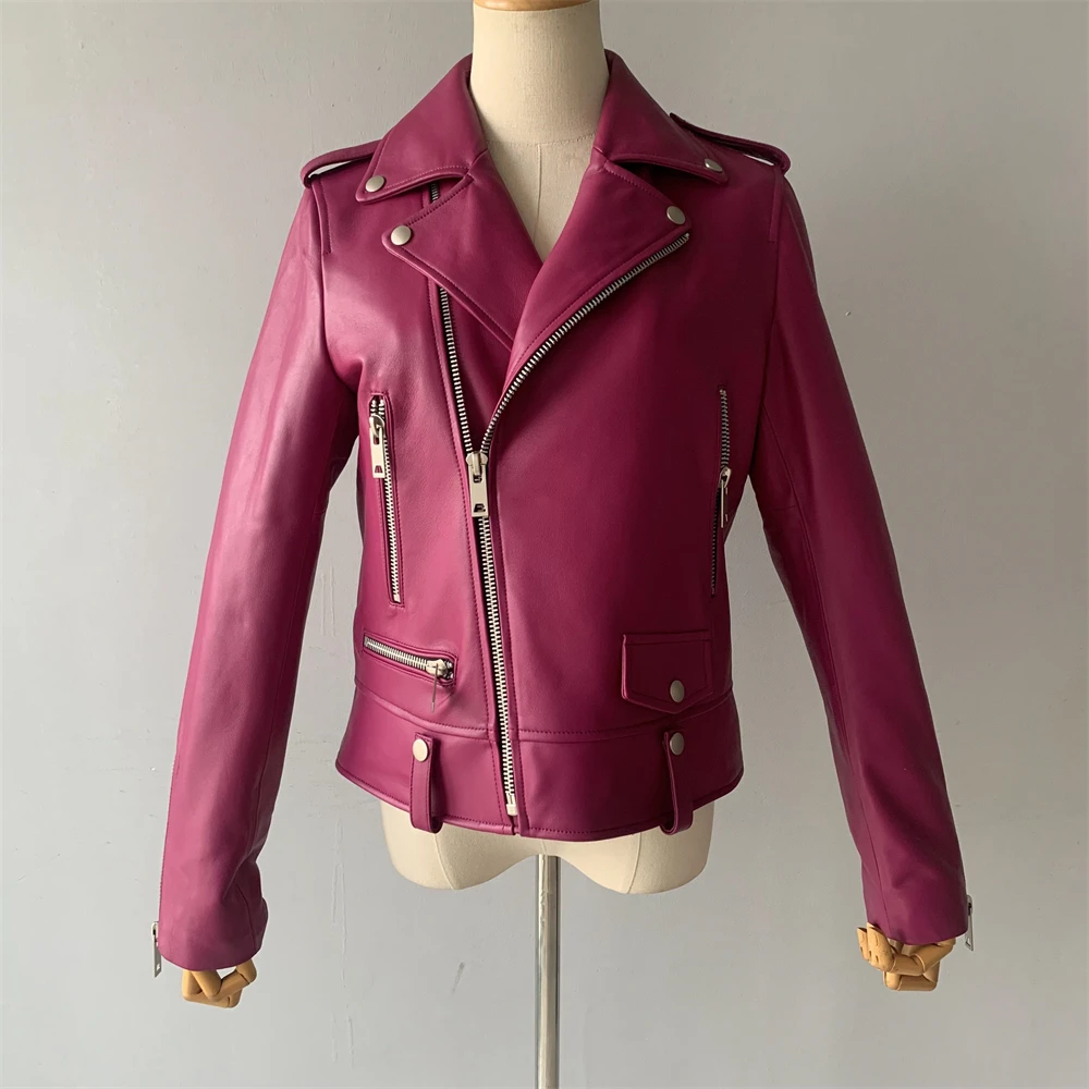 Cette veste moto zippée pour femme est fabriquée en cuir de mouton de haute qualité, très douce au toucher. Portez-le et devenez une fille cool. Cette veste en cuir véritable